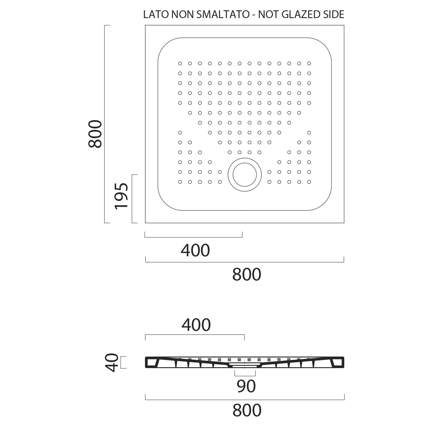 The ceramic shower tray is installed on the floor or flush with the floor.