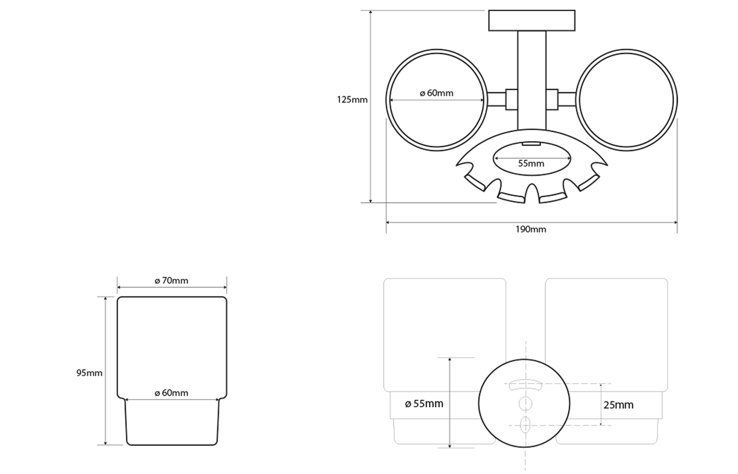XR902 BEMETA OMEGA Dupla pohártartó, 160x95x90mm, króm (104110022)