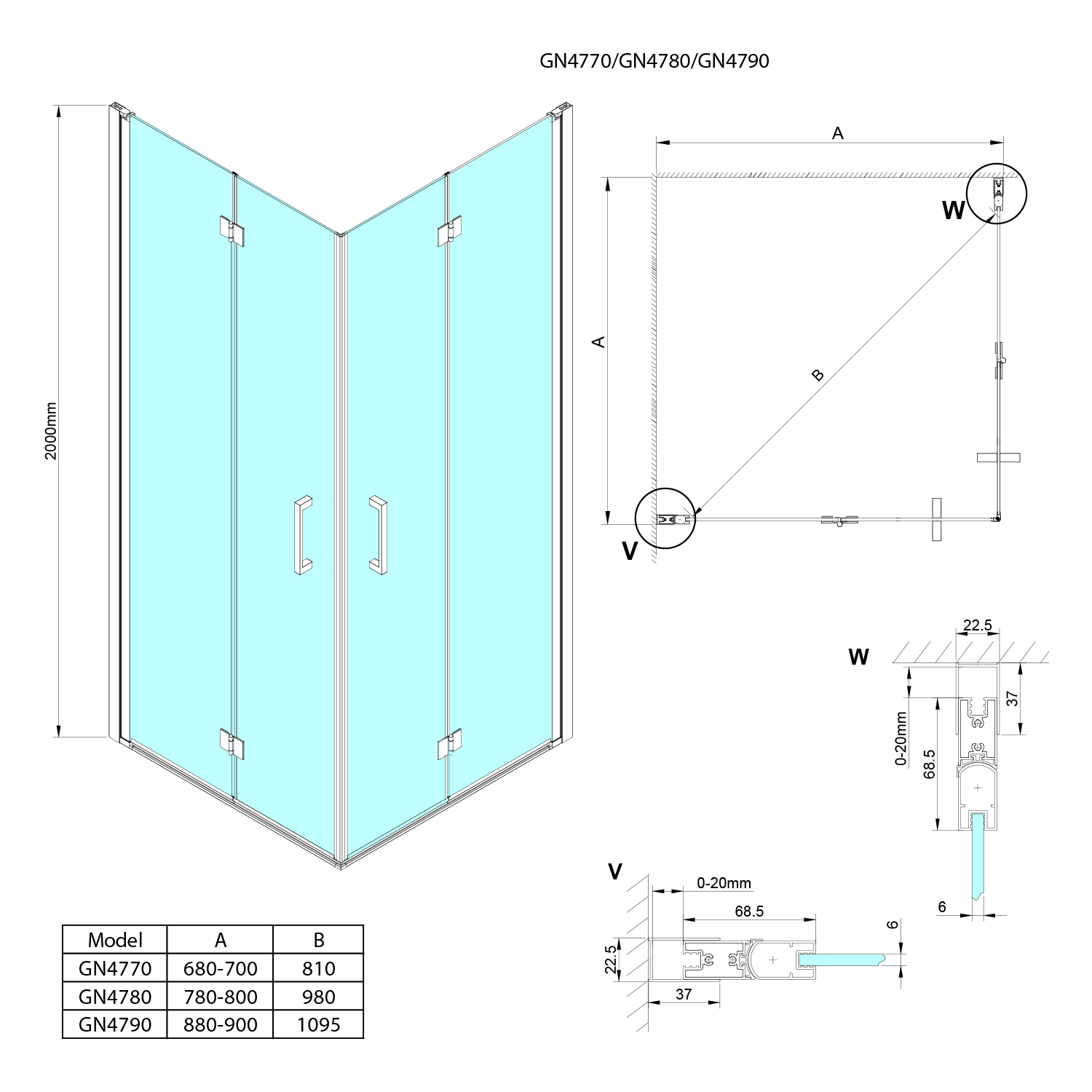 GN4780-02 GELCO LORO sarokbelépős zuhanykabin harmónikaajtóval, 800x700mm
