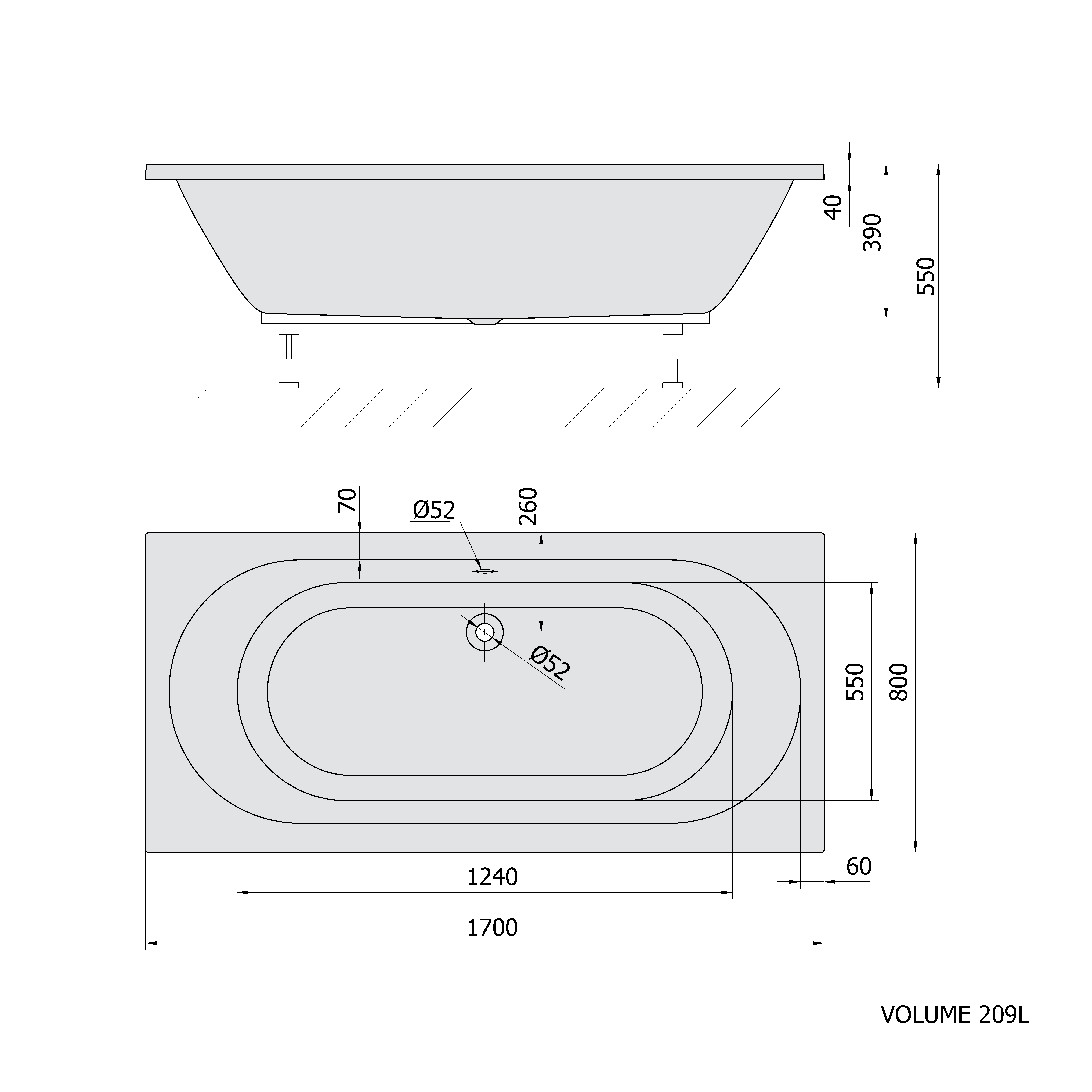 POLYSAN LEVANA akril kád, 170x80x39cm, szürke (71745.30)