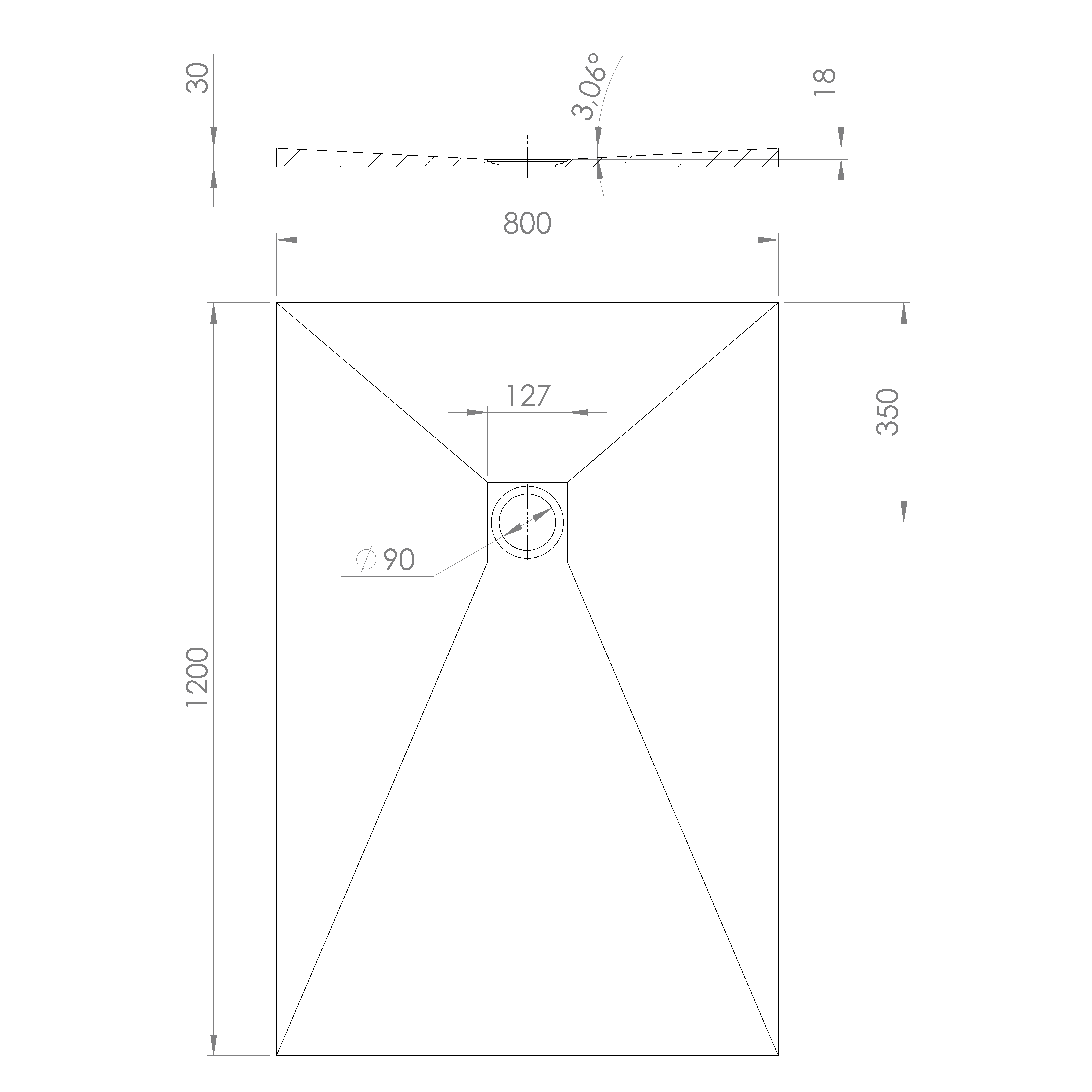 • Rectangular shower trays come in widths from 80 to 100 cm and legths from 90 to 160 cm