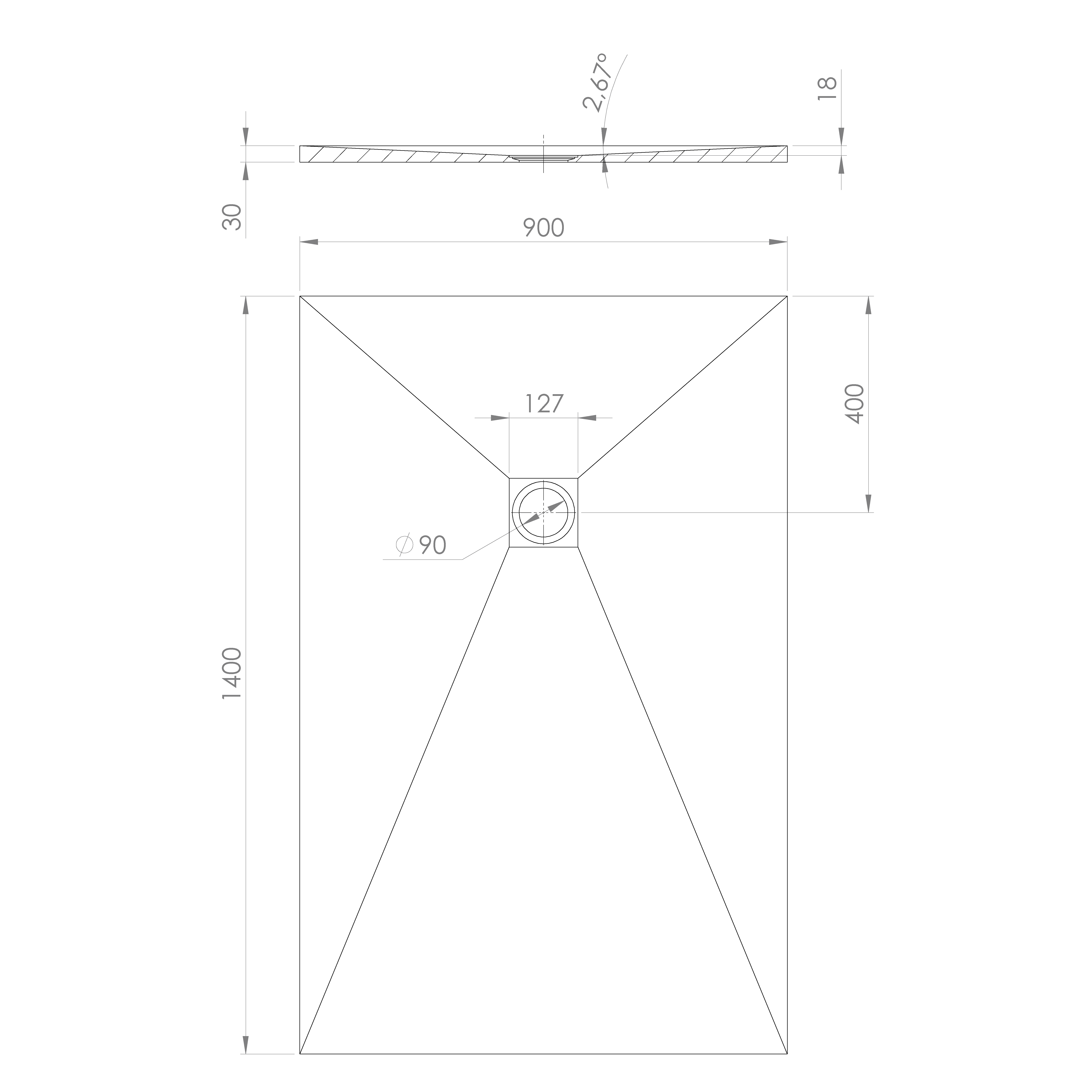 • Rectangular shower trays come in widths from 80 to 100 cm and legths from 90 to 160 cm