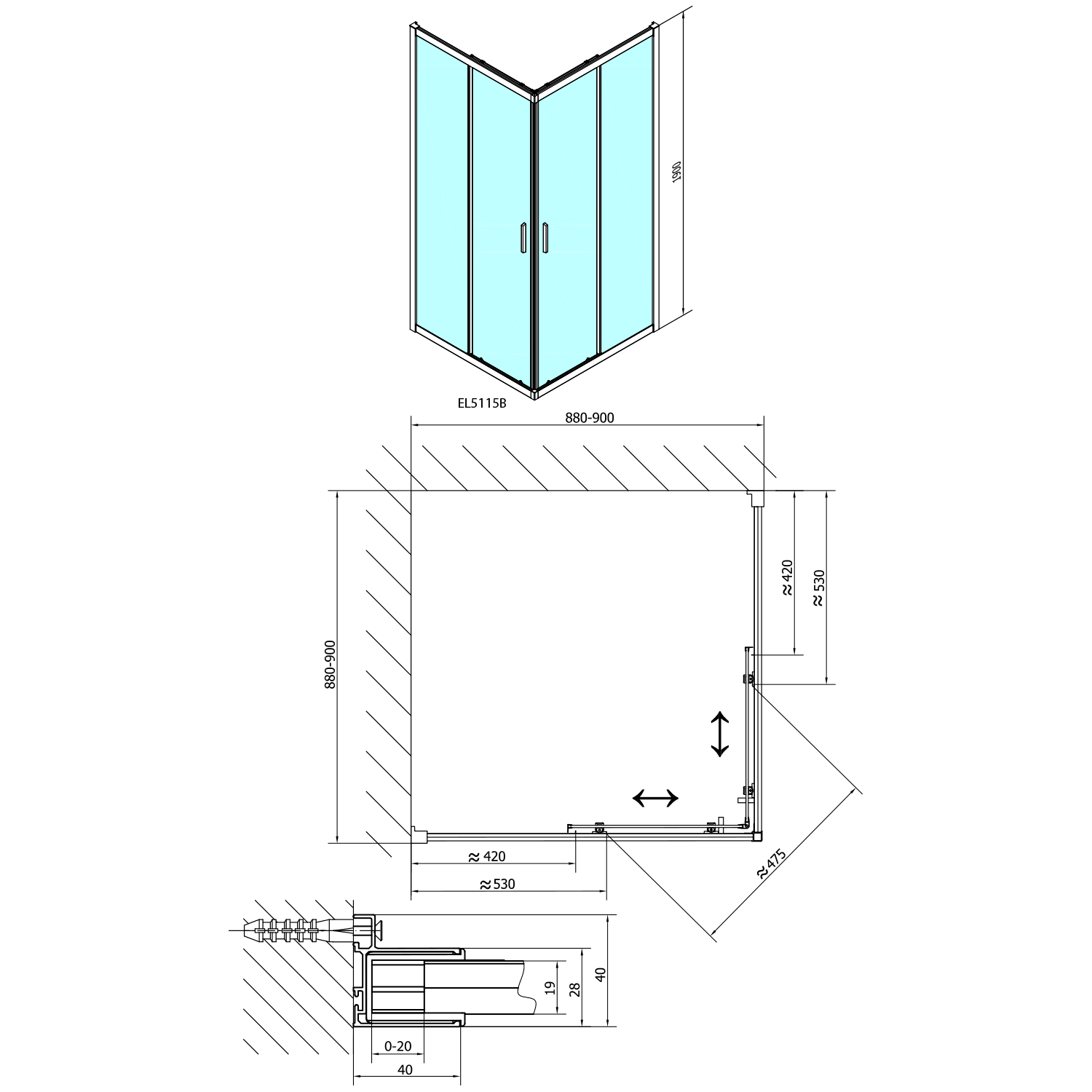 POLYSAN EASY LINE BLACK szögletes zuhanykabin, 900x900mm, matt fekete profil/transzparent üveg (EL5115B)