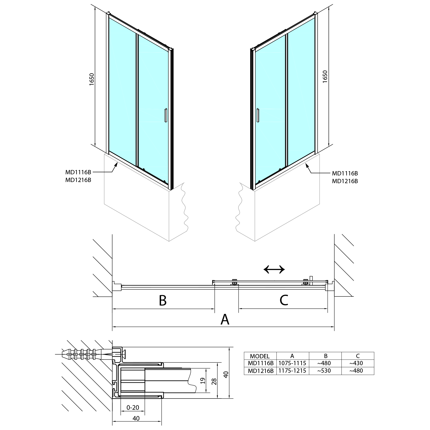 MD1116 POLYSAN DEEP tolóajtó, 1100x1650mm, transzparent