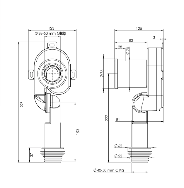 BRUCKNER piszoárszifon, DN50 (191.701.0)