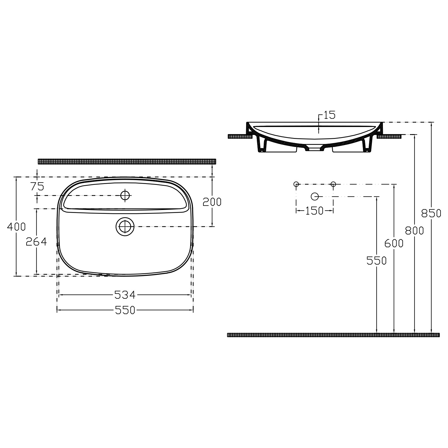 10NF65055-2L INFINITY OVAL kerámiamosdó, 55x36cm, matt fehér