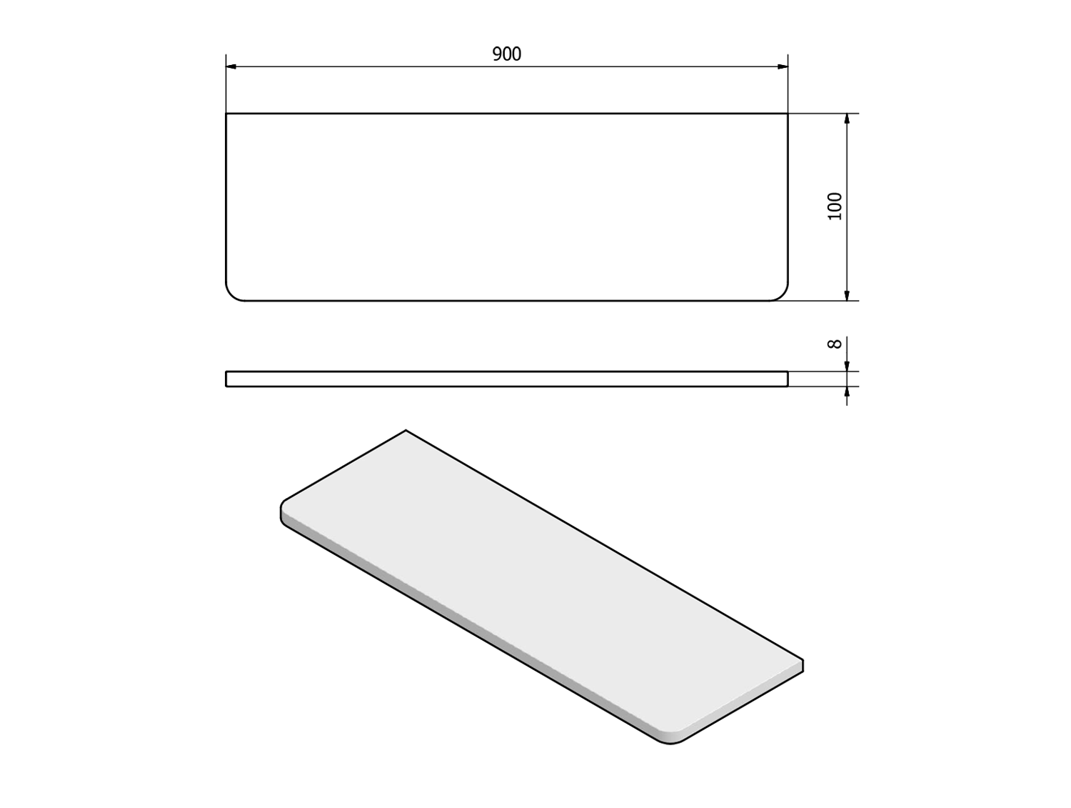 23485 Üvegpolc, polctartó nélkül, transzparent, 900x100x8mm (1db)