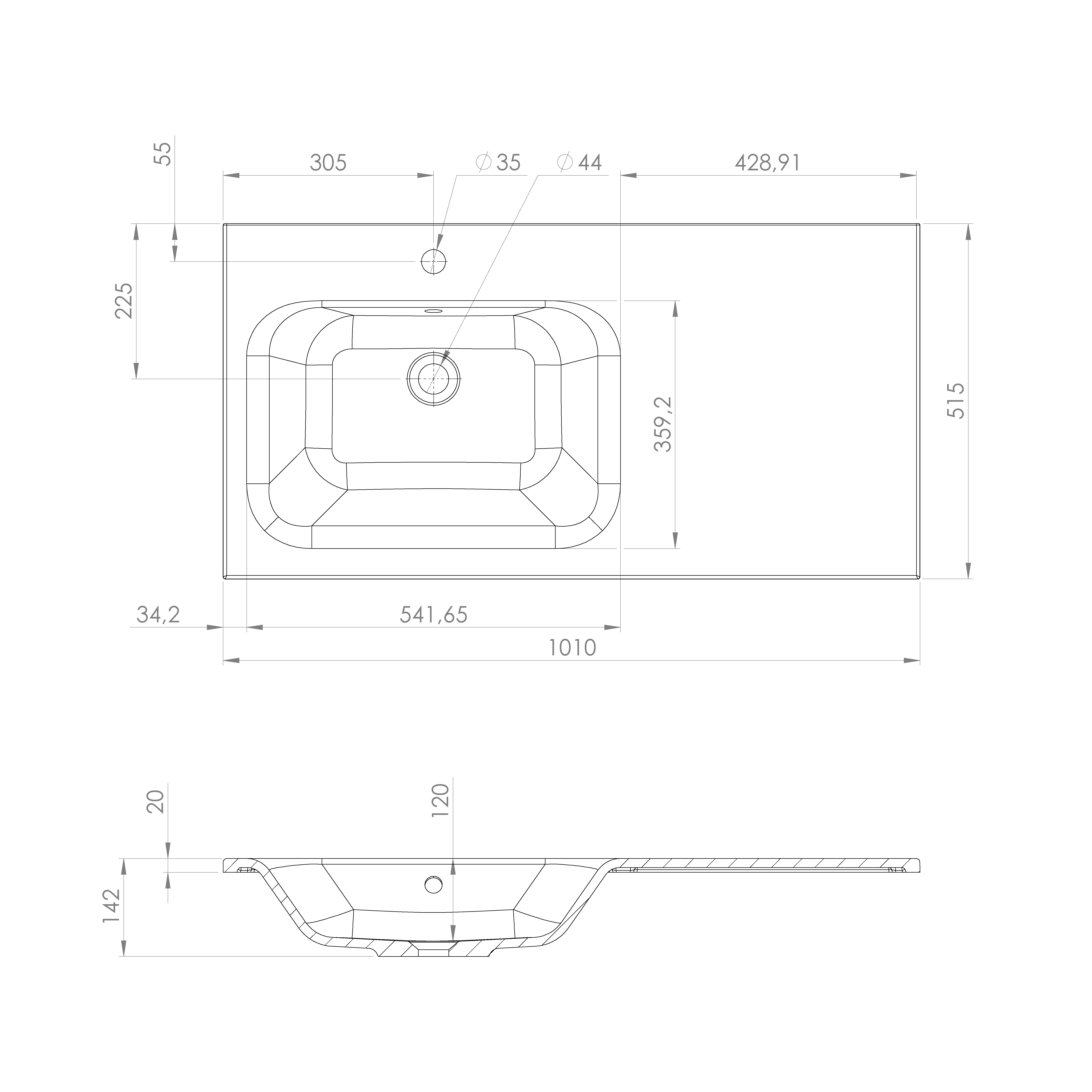 AC101L ARECA öntöttmárvány mosdó, 101x51,5cm
