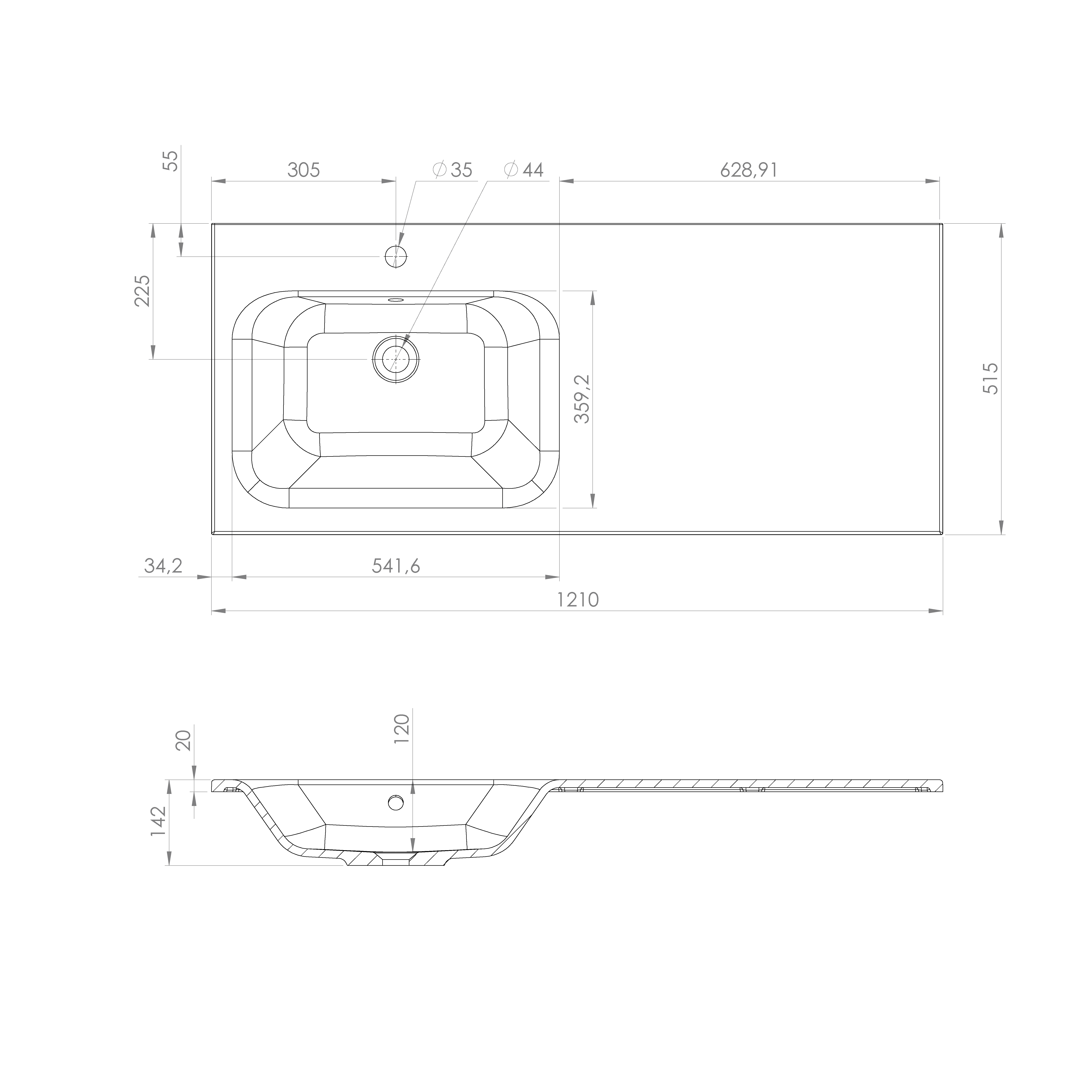 AC121L ARECA öntöttmárvány mosdó, 121x51,5cm