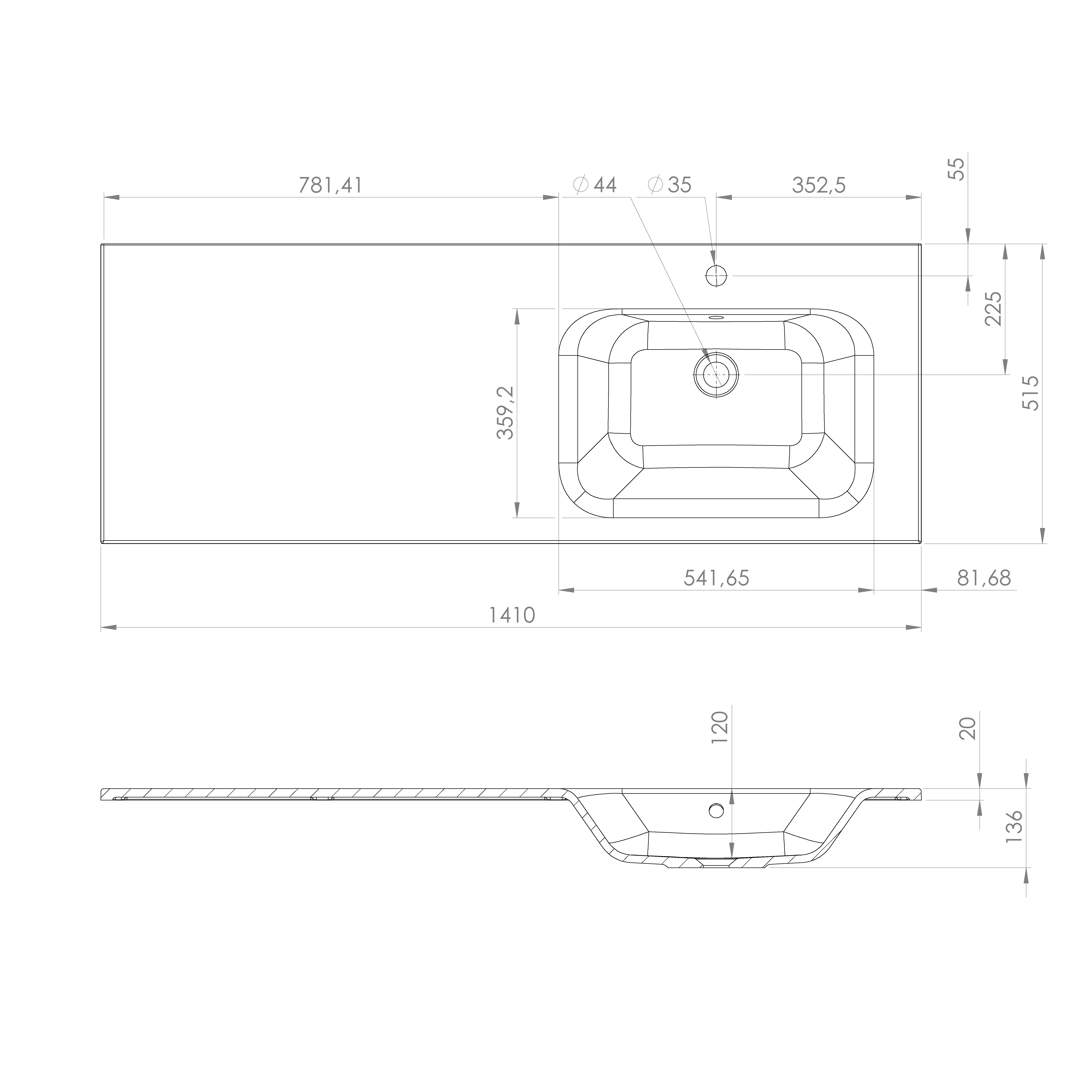 AC141R ARECA öntöttmárvány mosdó, 141x51,5cm