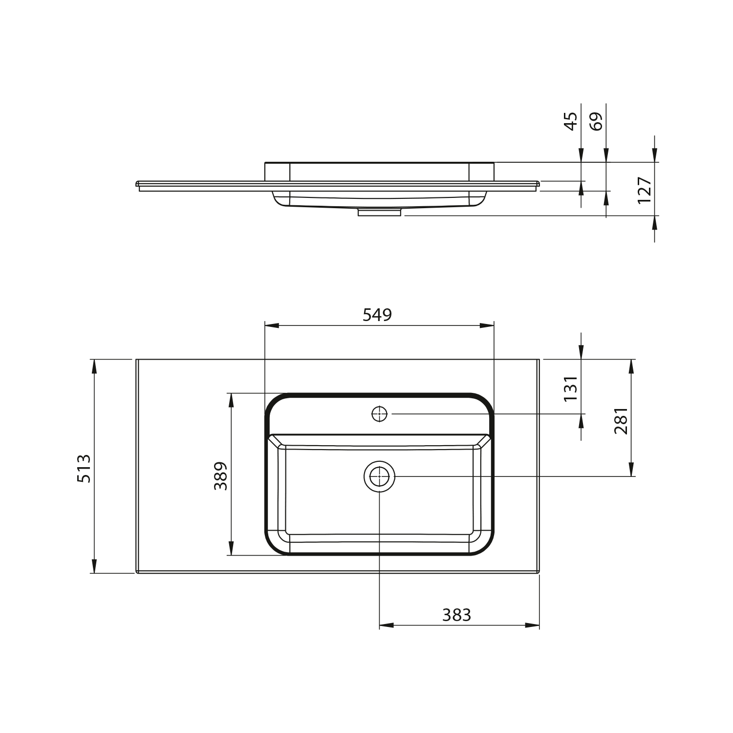 BE755 BRAHEA pultbasüllyeszthető rockstone mosdó, 55x39cm, matt fehér (1db)