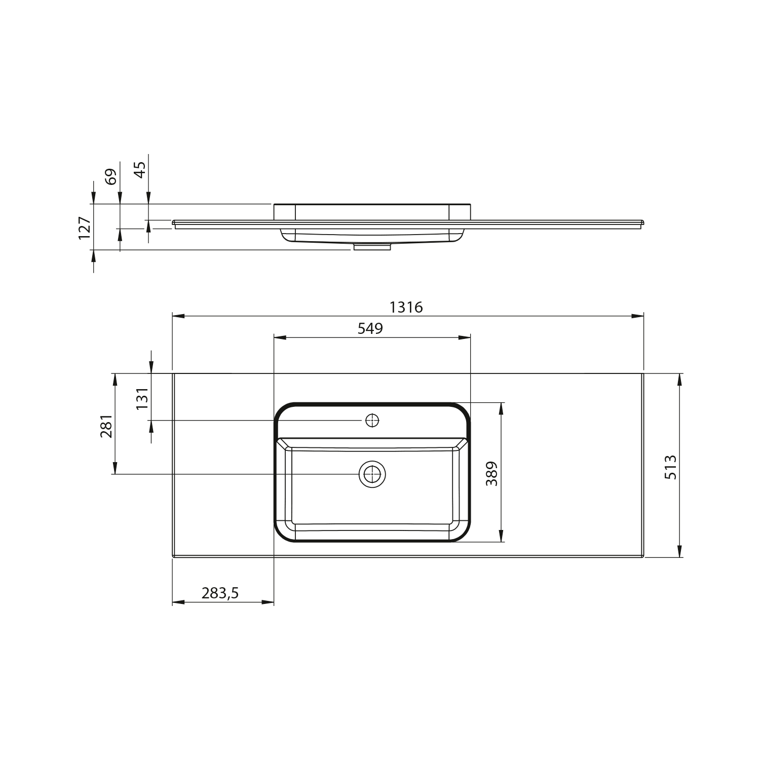 BRAHEA Rockstone mosdó és pult, 131,6x51,5cm, balos, matt fehér (BT132L)