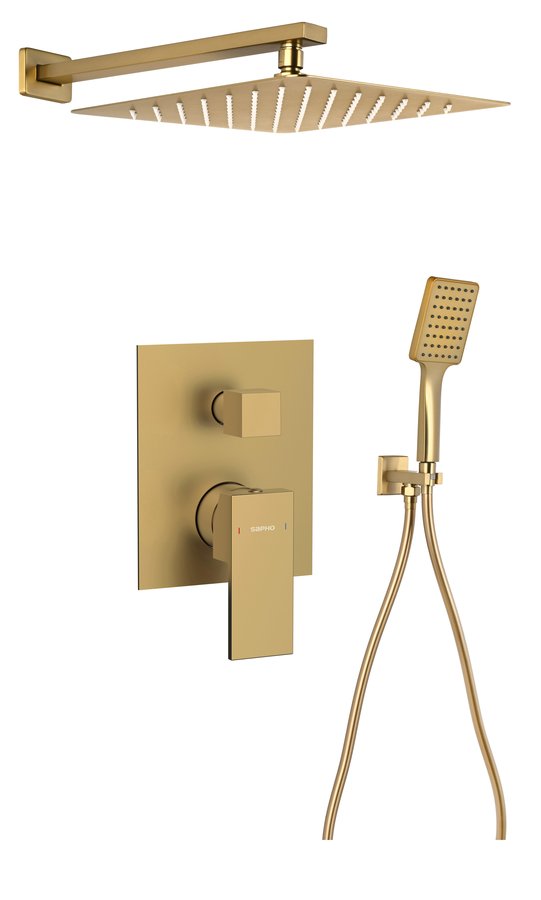 CUBEMIX falbasüllyesztett csaptelep, zuhanyszettel, fejzuhannyal, 2-irányú, matt arany (CM042GB-01)