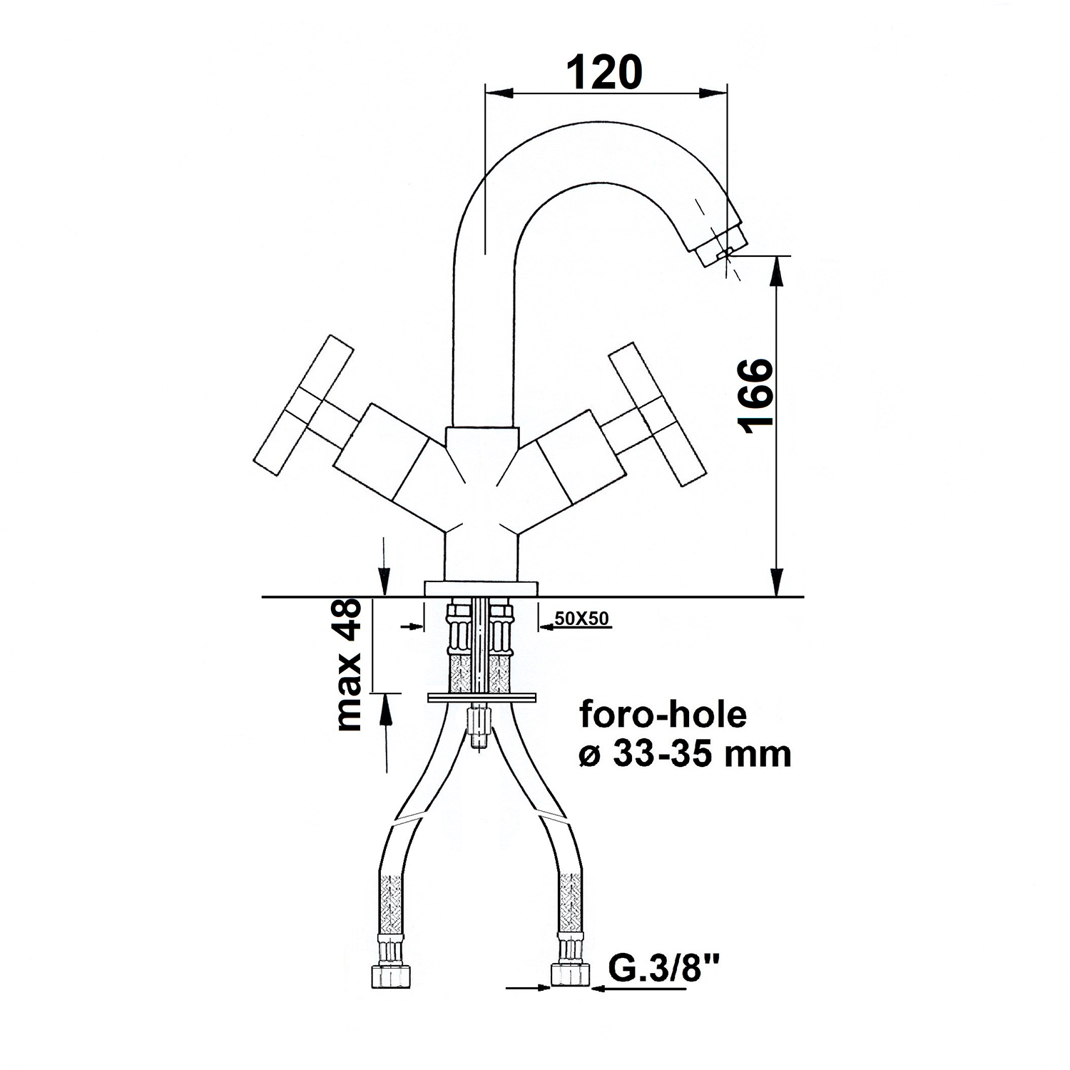 652 TRAX falba süllyesztett 3 részes mosdócsaptelep, króm