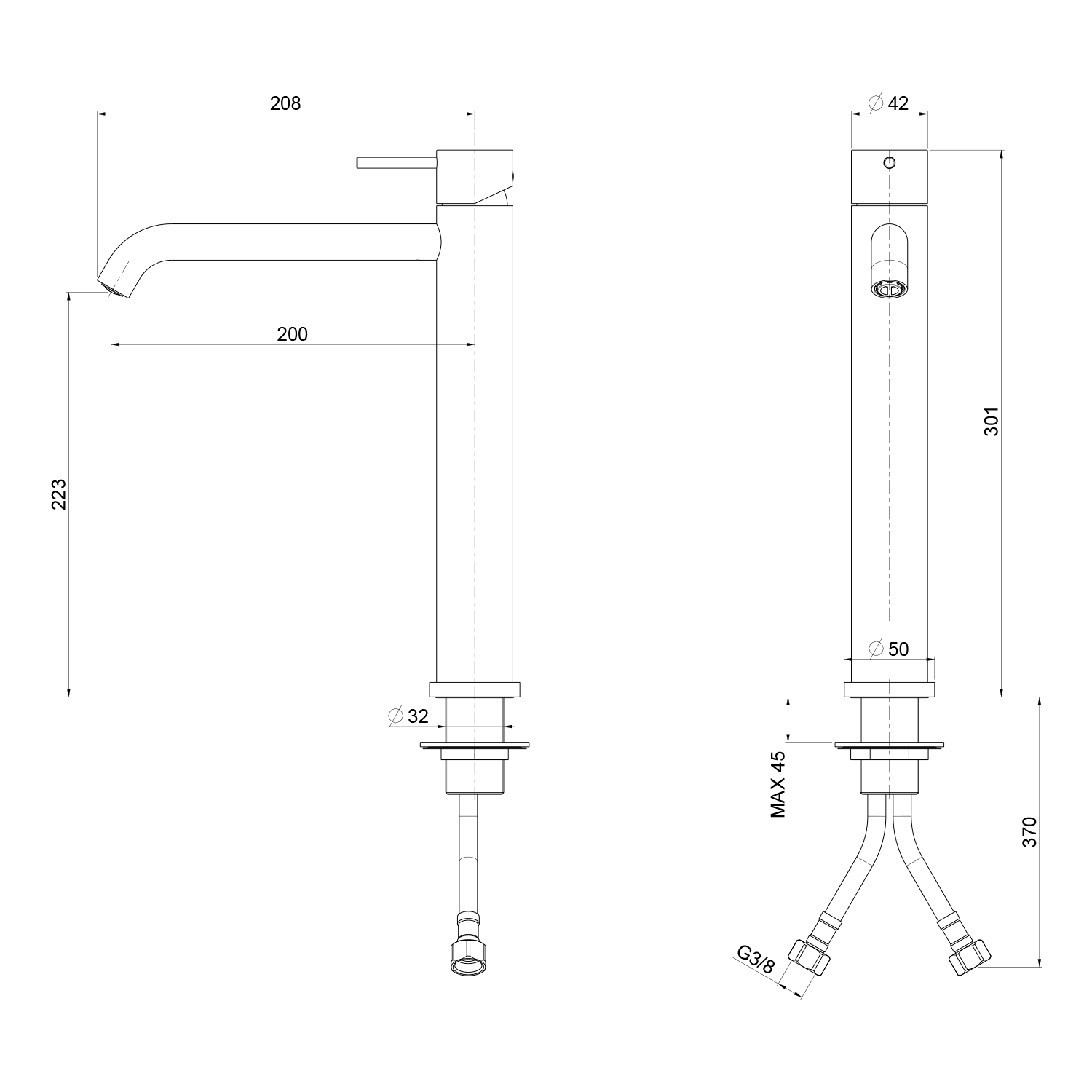 UT007BC ULTRAMIX álló magasított mosdócsaptelep, hosszú kifolyócsővel, matt fekete/króm