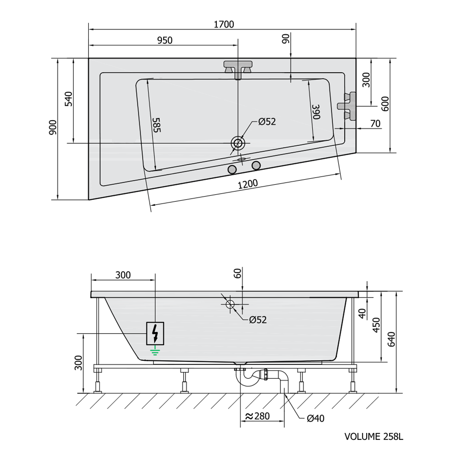 • Easy to install (like standard bathtubs + electric supply)
