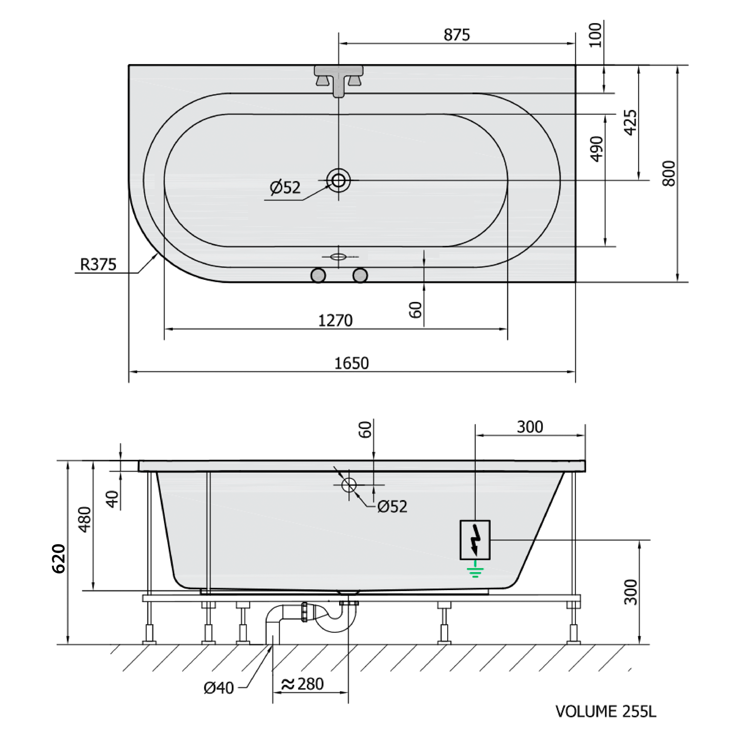 11611.5010 POLYSAN EVIA aszimmetrikus kád, balos, Highline Hydro, 160x100x47cm, króm