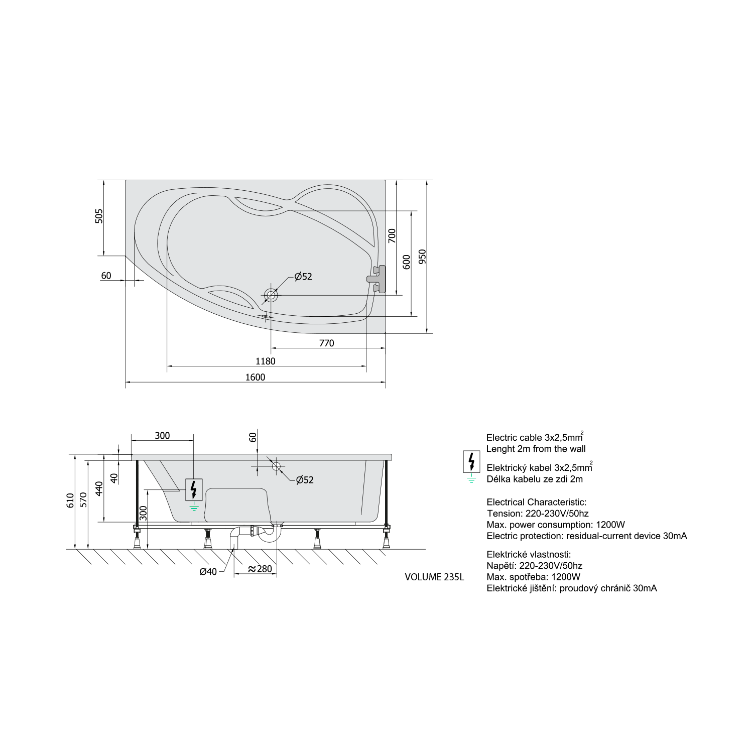 11611.3010 POLYSAN EVIA aszimmetrikus kád, balos, Attraction Hydro, 160x100x47cm, króm