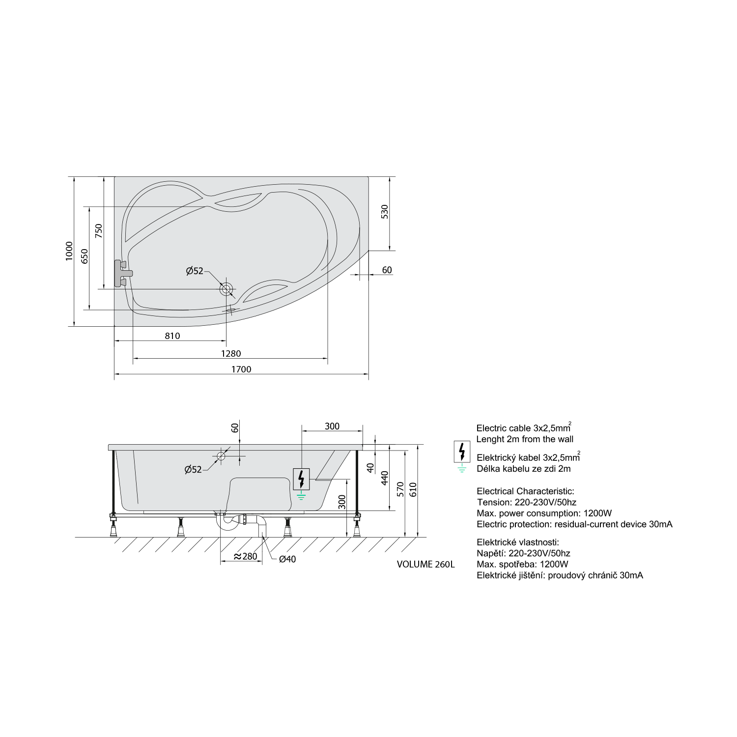 • Easy to install (like standard baths + electric supply)