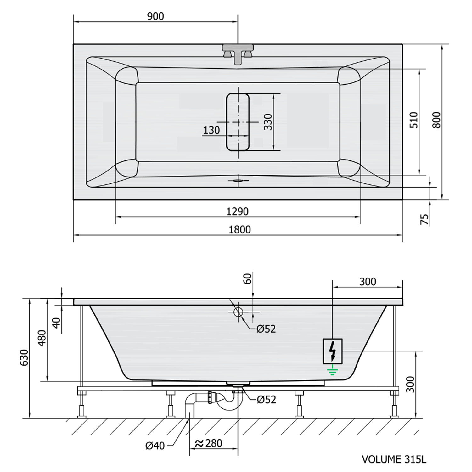 The bathtub is equipped with the HYDRO system: