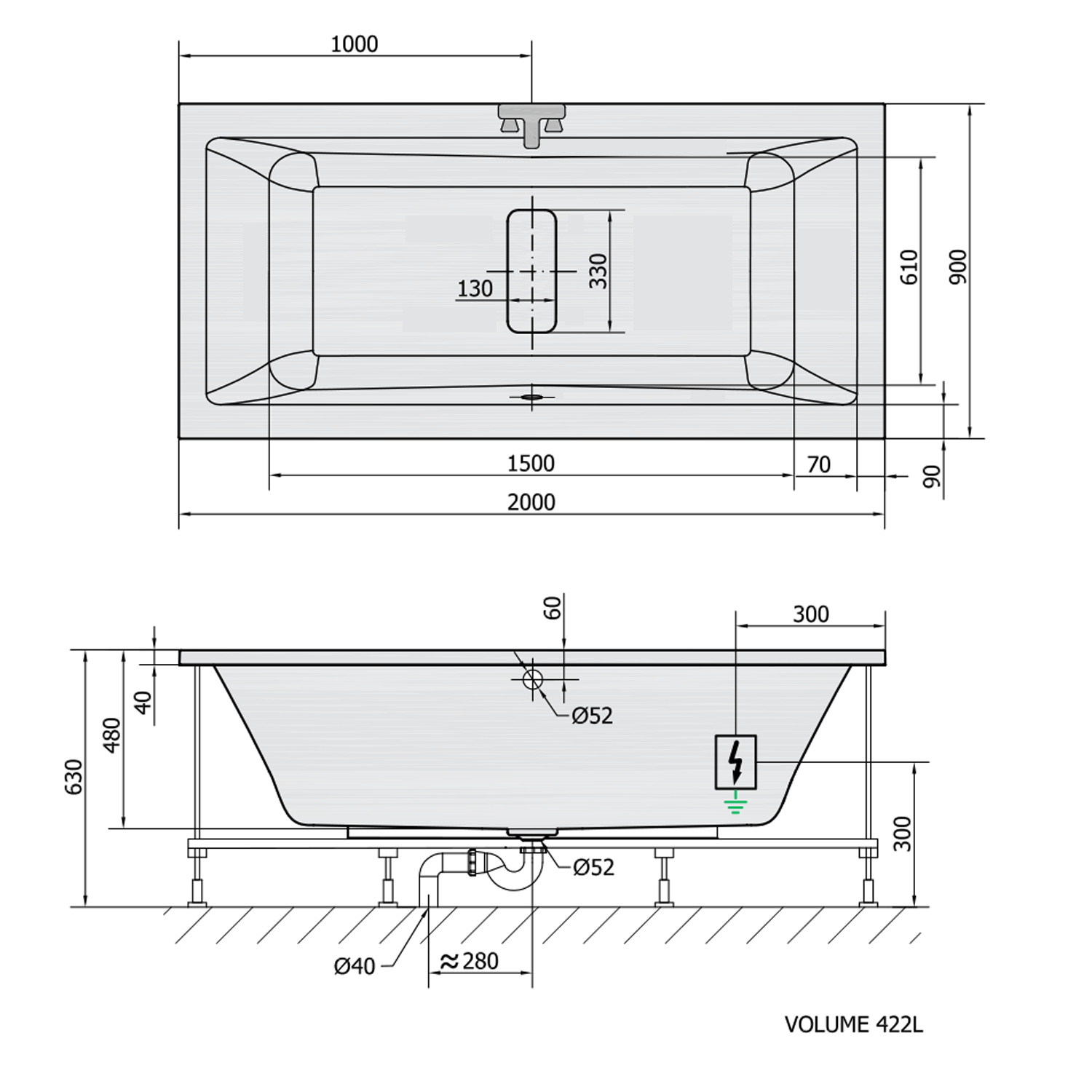 88119.5010 POLYSAN VIVA B kád, Highline Hydro, 175x80x47cm, króm