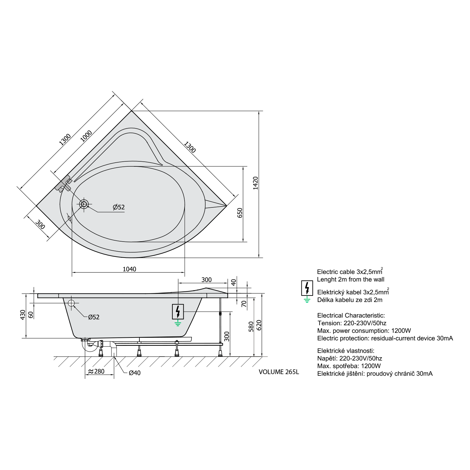 11611.5010 POLYSAN EVIA aszimmetrikus kád, balos, Highline Hydro, 160x100x47cm, króm