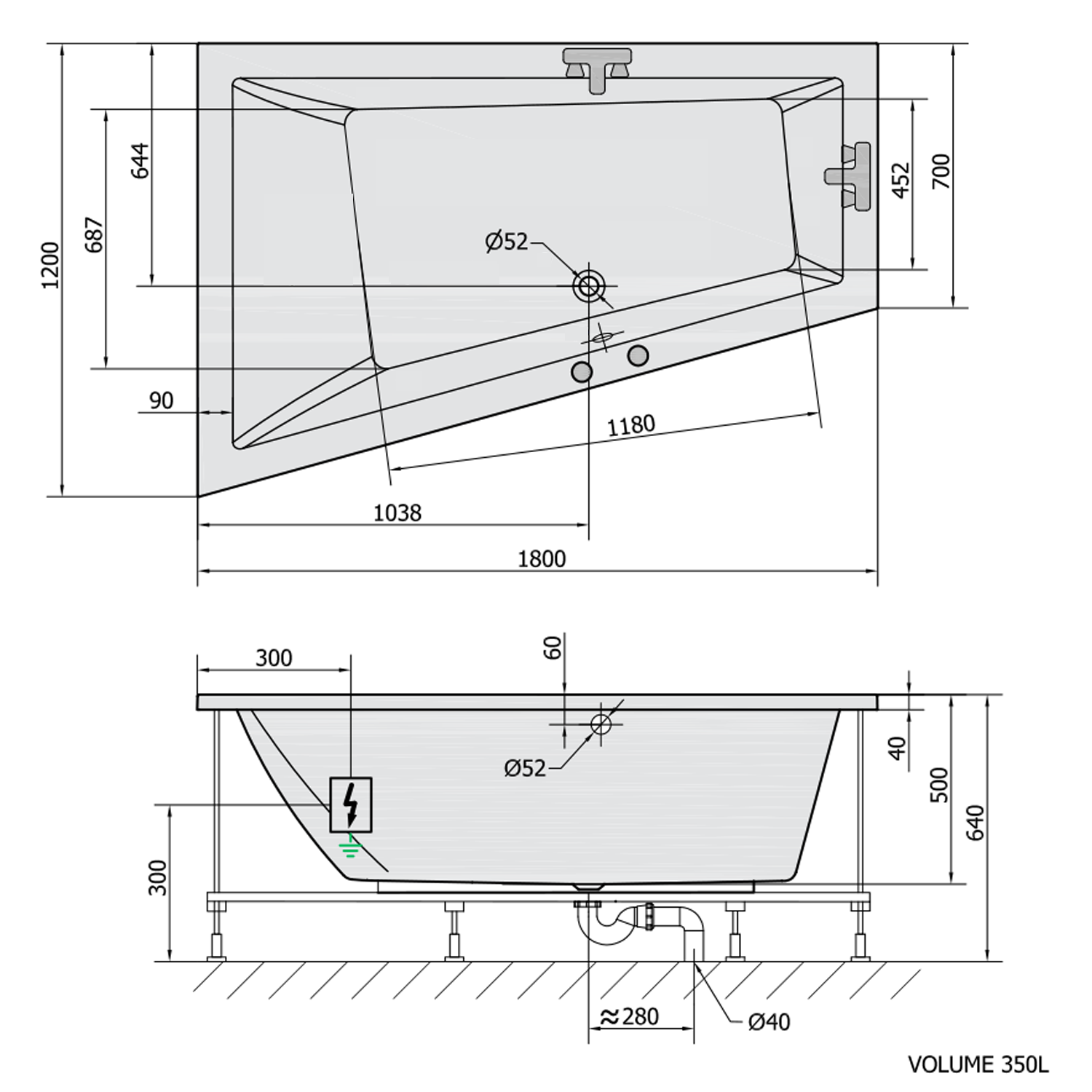 90611.3010 POLYSAN TIGRA aszimmetrikus kád, jobbos, Attraction Hydro, 170x80x46cm, króm