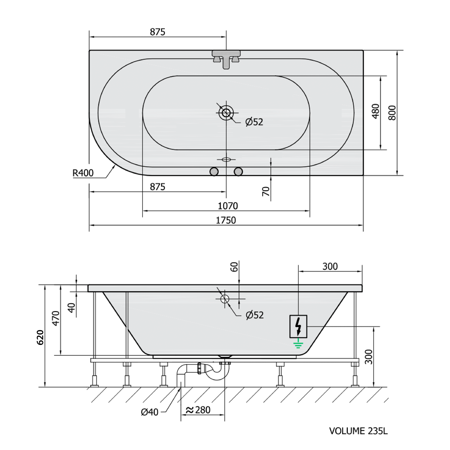 • Easy to install (like standard baths + electric supply)