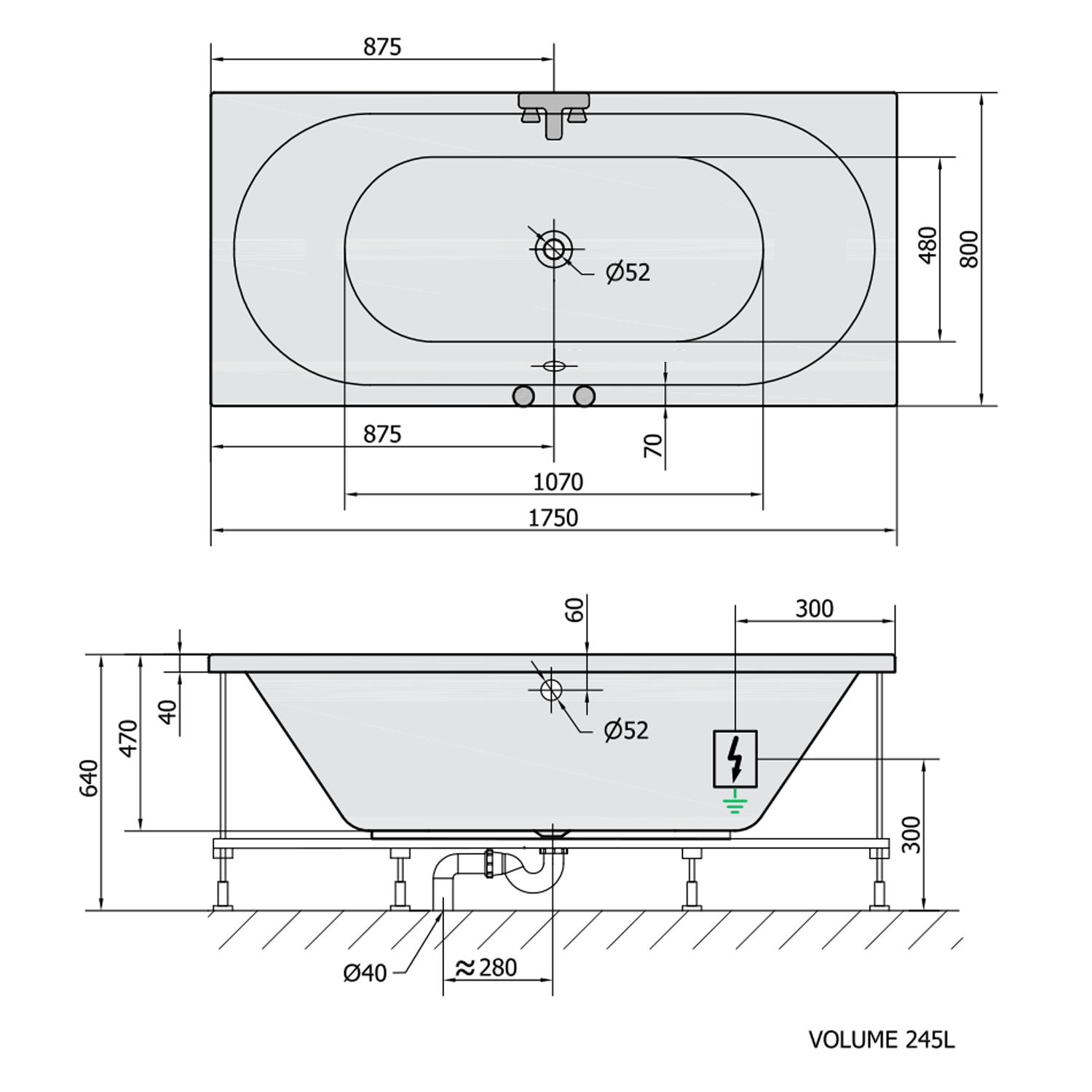 • Easy to install (like standard baths + electric supply)