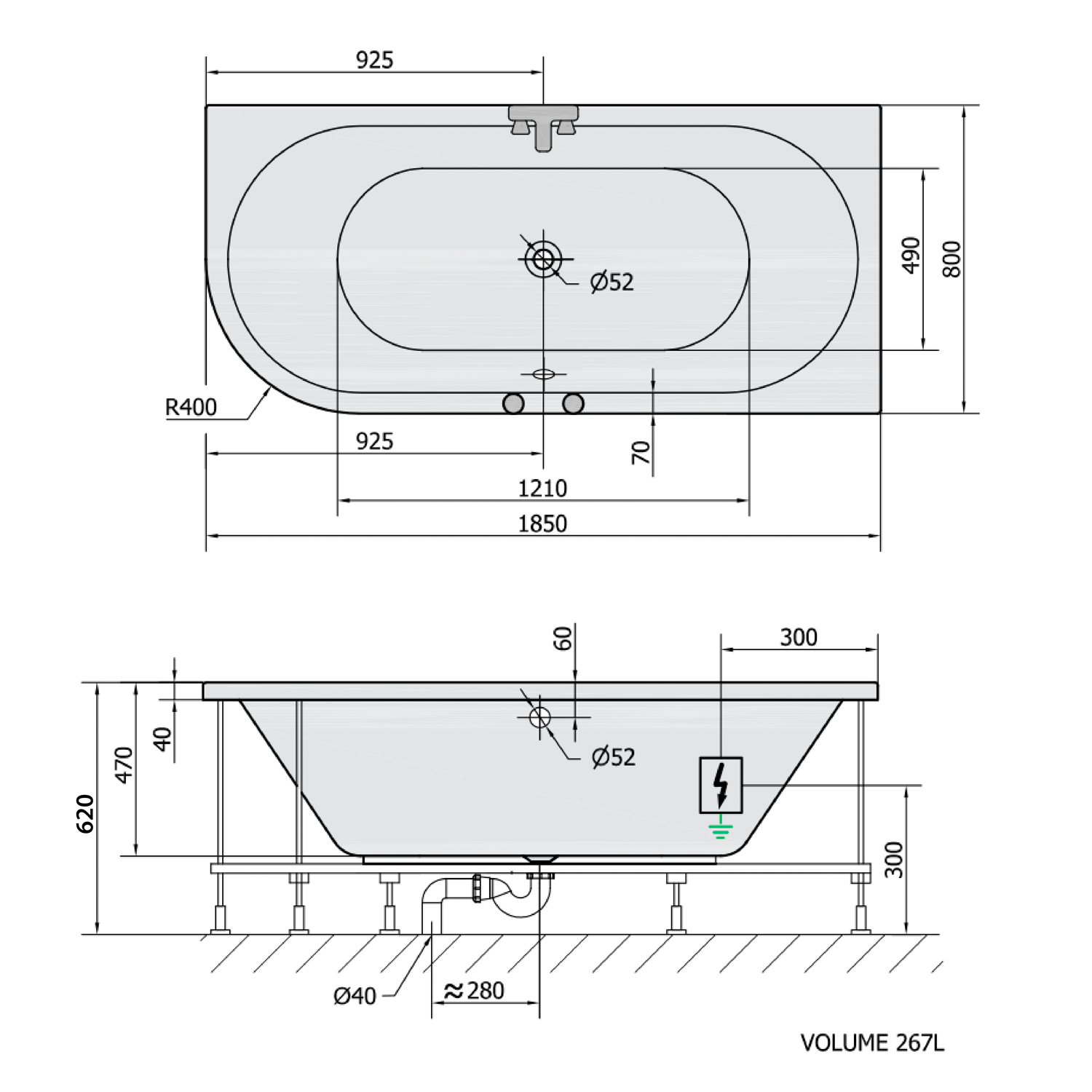 • Easy to install (like standard bathtubs + electric supply)