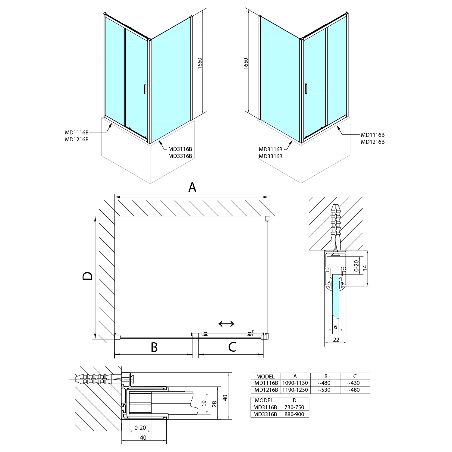 MD1116MD3316 DEEP szögletes zuhanykabin 1100x900mm, balos/jobbos, transparent
