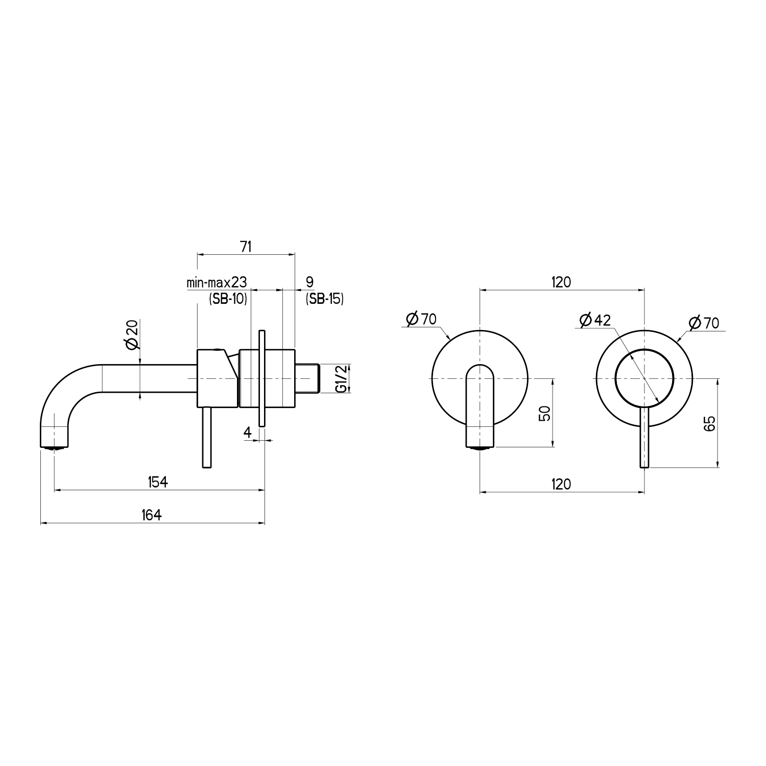 UT110B ULTRAMIX falbasüllyesztett csaptelep kifolyócsővel, 10cm, matt fekete