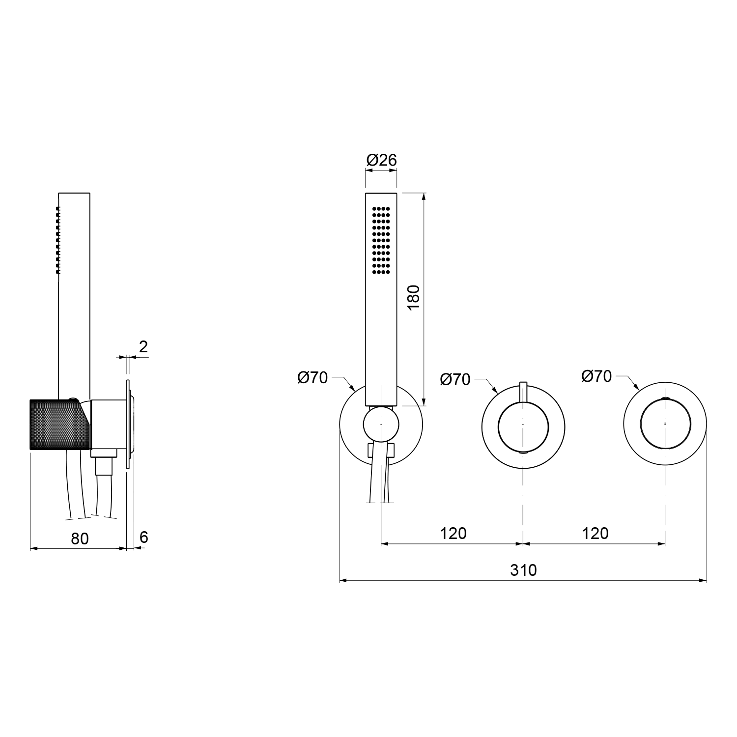 UT093TB ULTRATAP falbasüllyeszthető csaptelep, kifolyócsővel és kézizuhannyal, 2-irányú, matt fekete