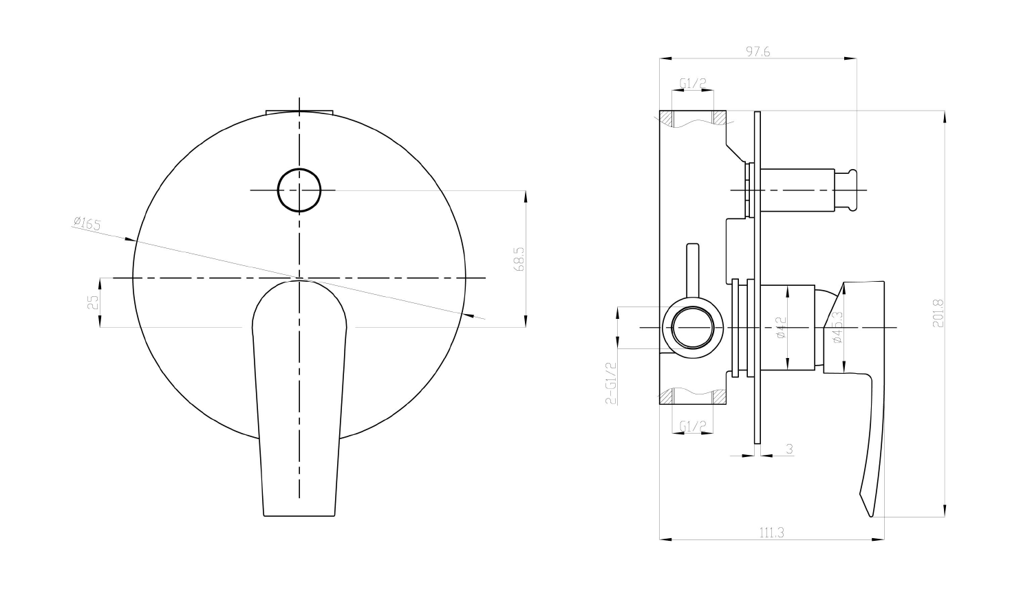 XA42-03 PAX falba süllyesztett csaptelep, 2-irányú, zuhanyszettel, fejzuhannyal, króm