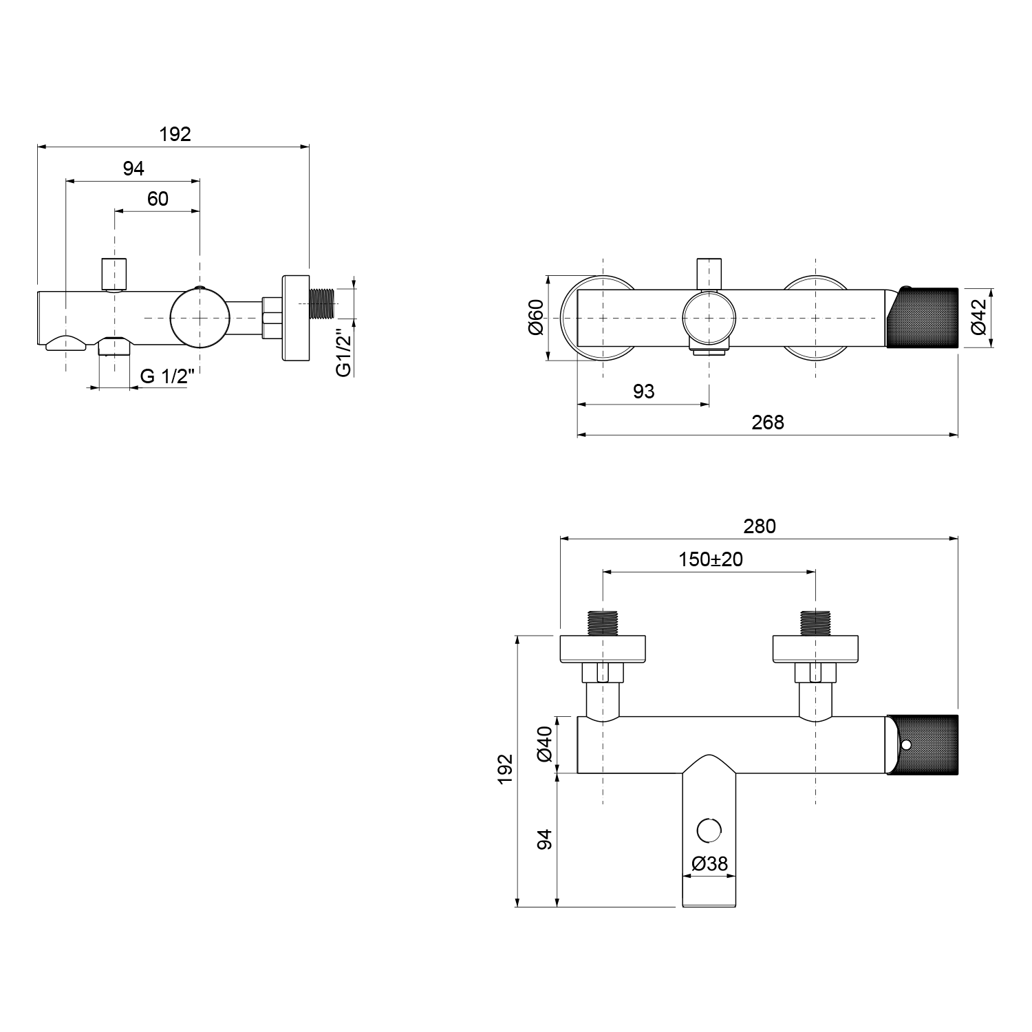 UT010TBC ULTRATAP fali kádtöltő csaptelep, matt fekete/króm