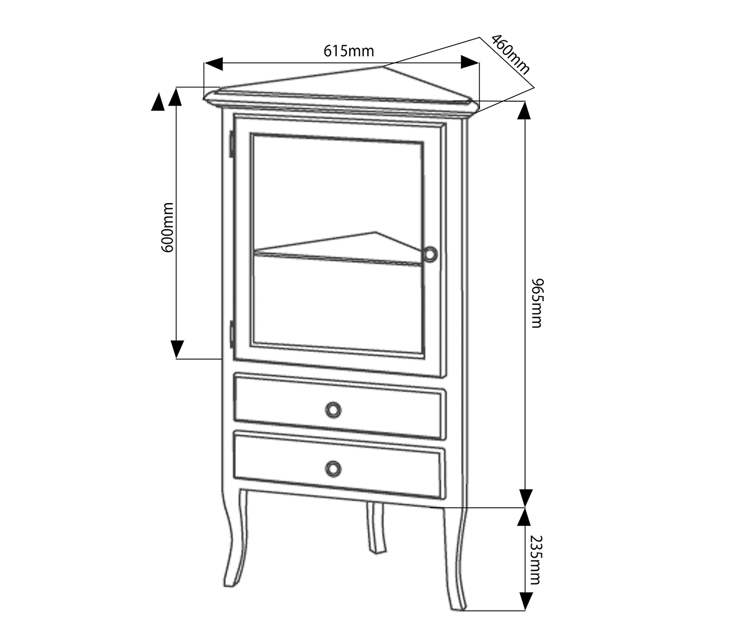 1715 RETRO állószekrény, 1 üvegajtóval, 2 fiókkal, jobbos, 60x120x47 cm, bükk