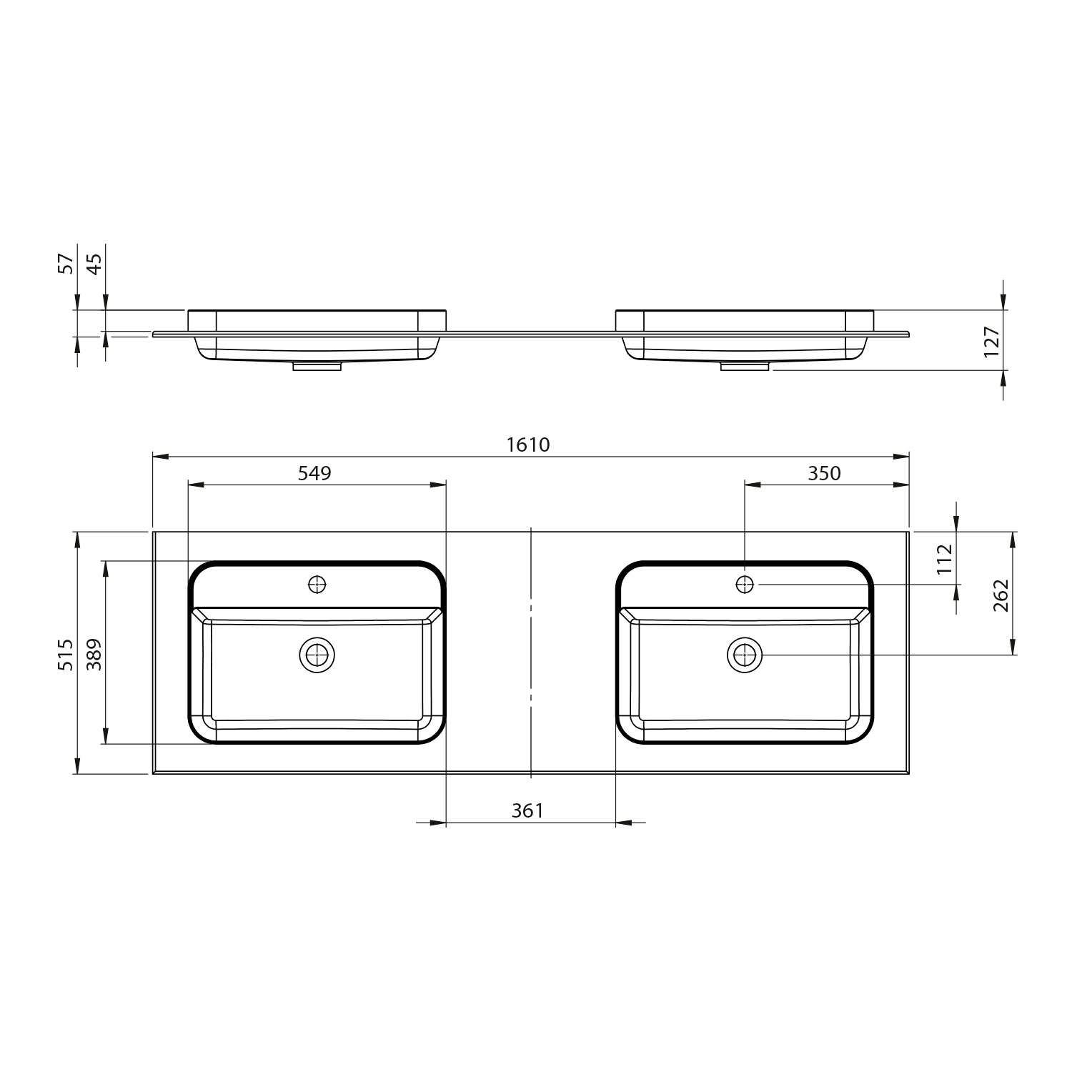 BRAHEA Rockstone duplamosdó és pult, 161x51,5cm (70+20+70cm), Rockstone, matt fehér (BL161-70)