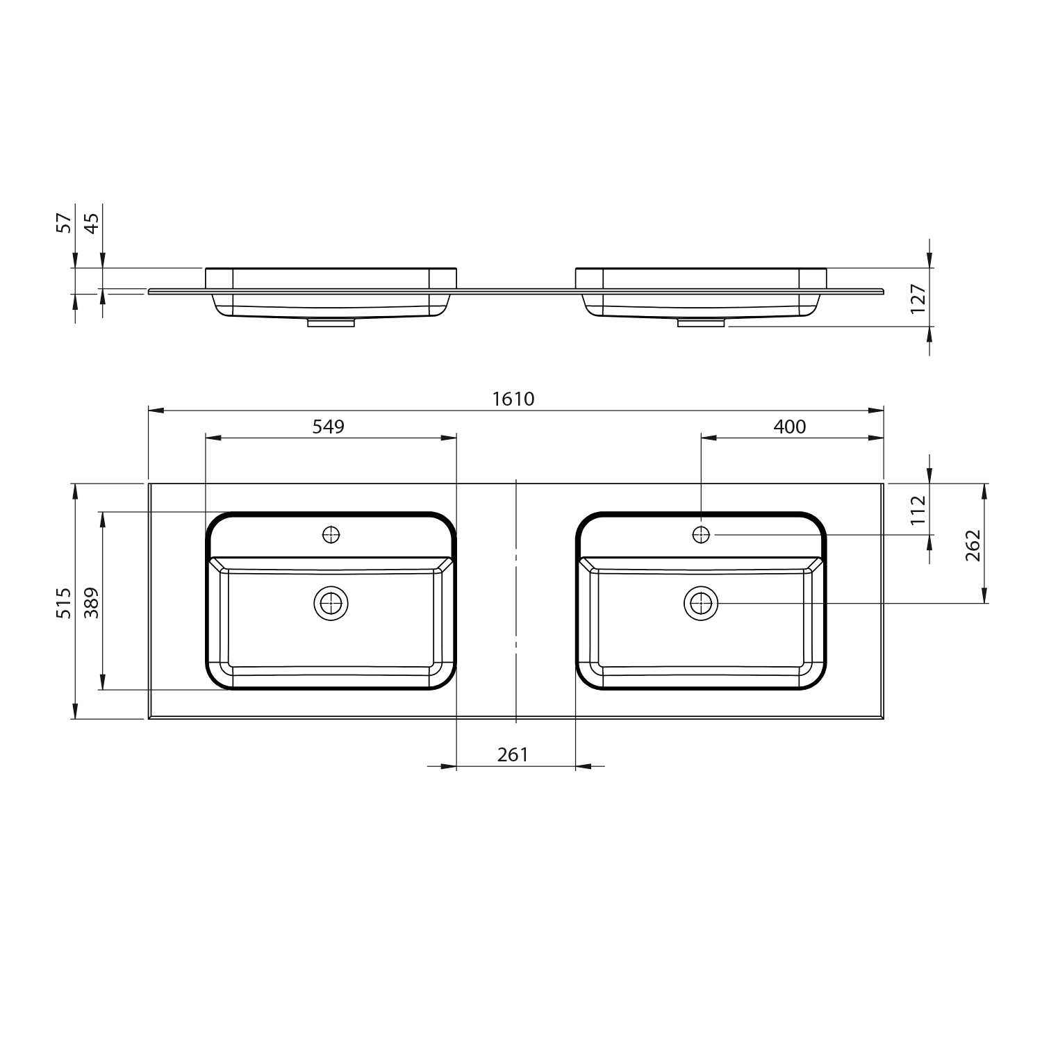 BRAHEA Rockstone duplamosdó és pult, 161x51,5cm (80+80cm), Rockstone, matt fehér (BL161-80)