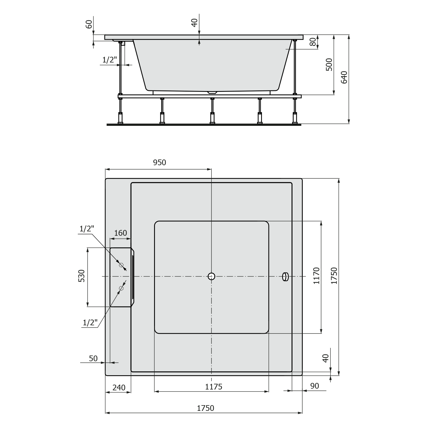 POLYSAN CAME kád, lábszerkezettel 175x175x50cm (23611F)