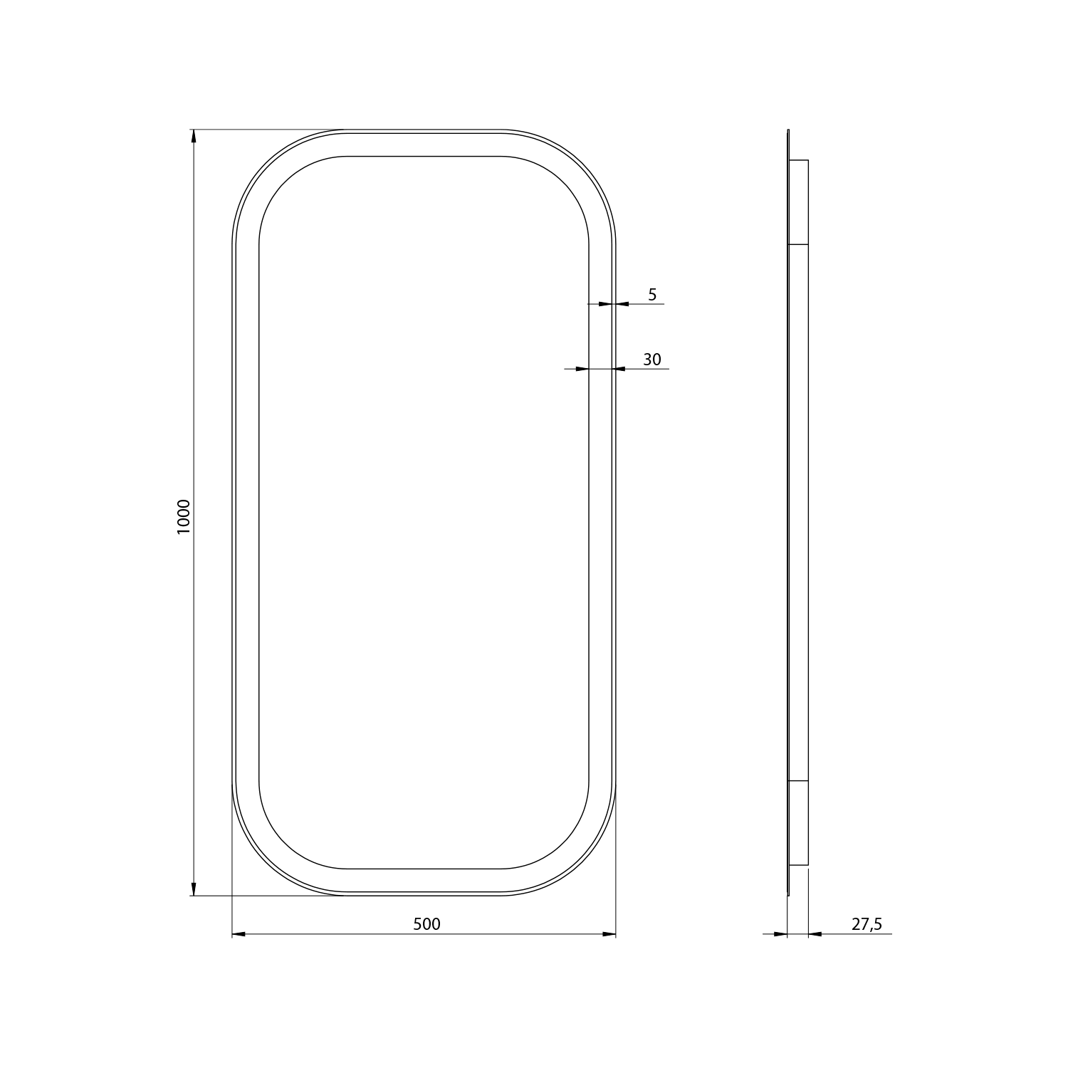 MANOR tükör LED világítással, 50x100cm (MN500)