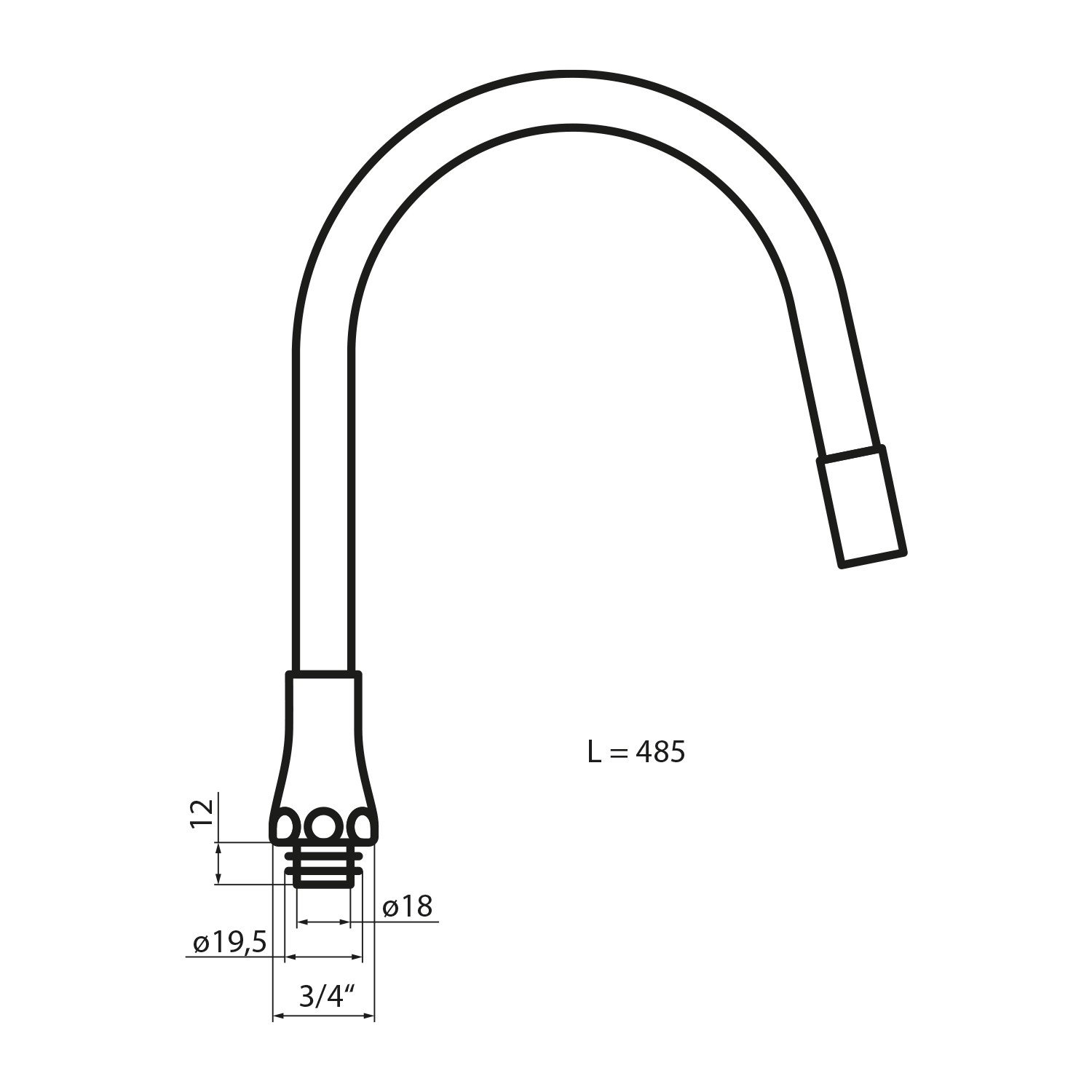 AQUALINE flexibilis kifolyócső, 470mm, 3/4 ", matt fekete (43983)