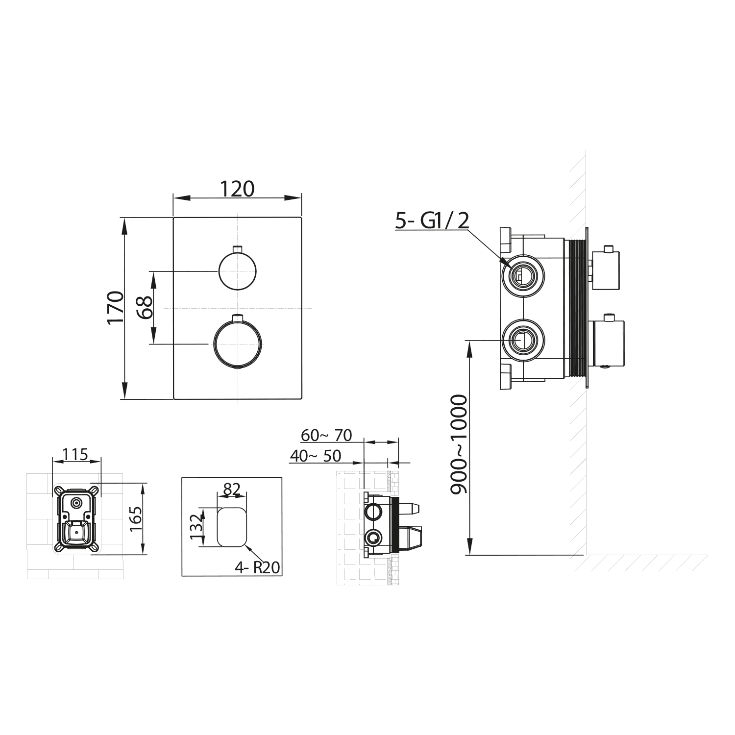 KU682 KIMURA falsík alatti termosztátos zuhanycsaptelep, 2 irányú, króm