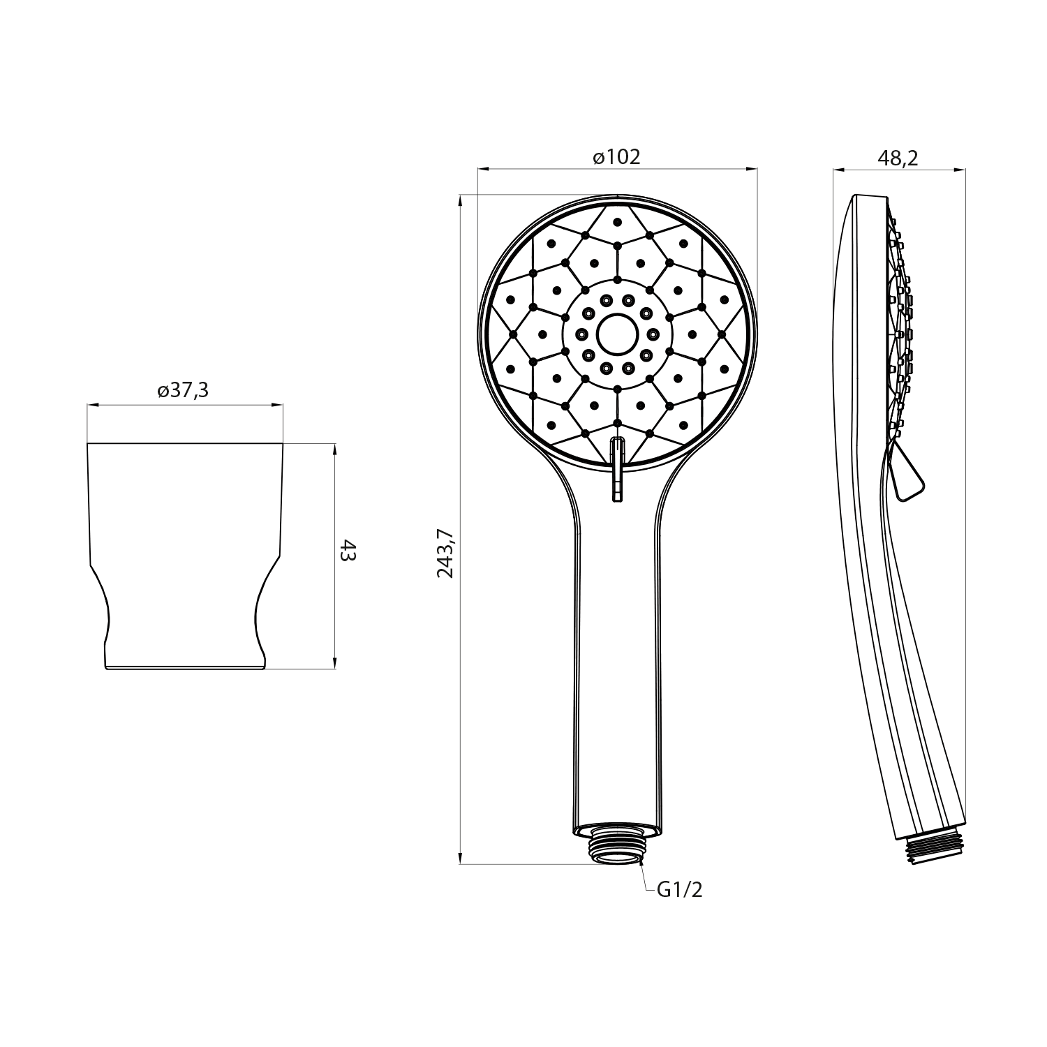 1204-62 Kézi zuhany, 3 funkció, szilikon fúvókák, tartó, gégecső, 1500mm, króm
