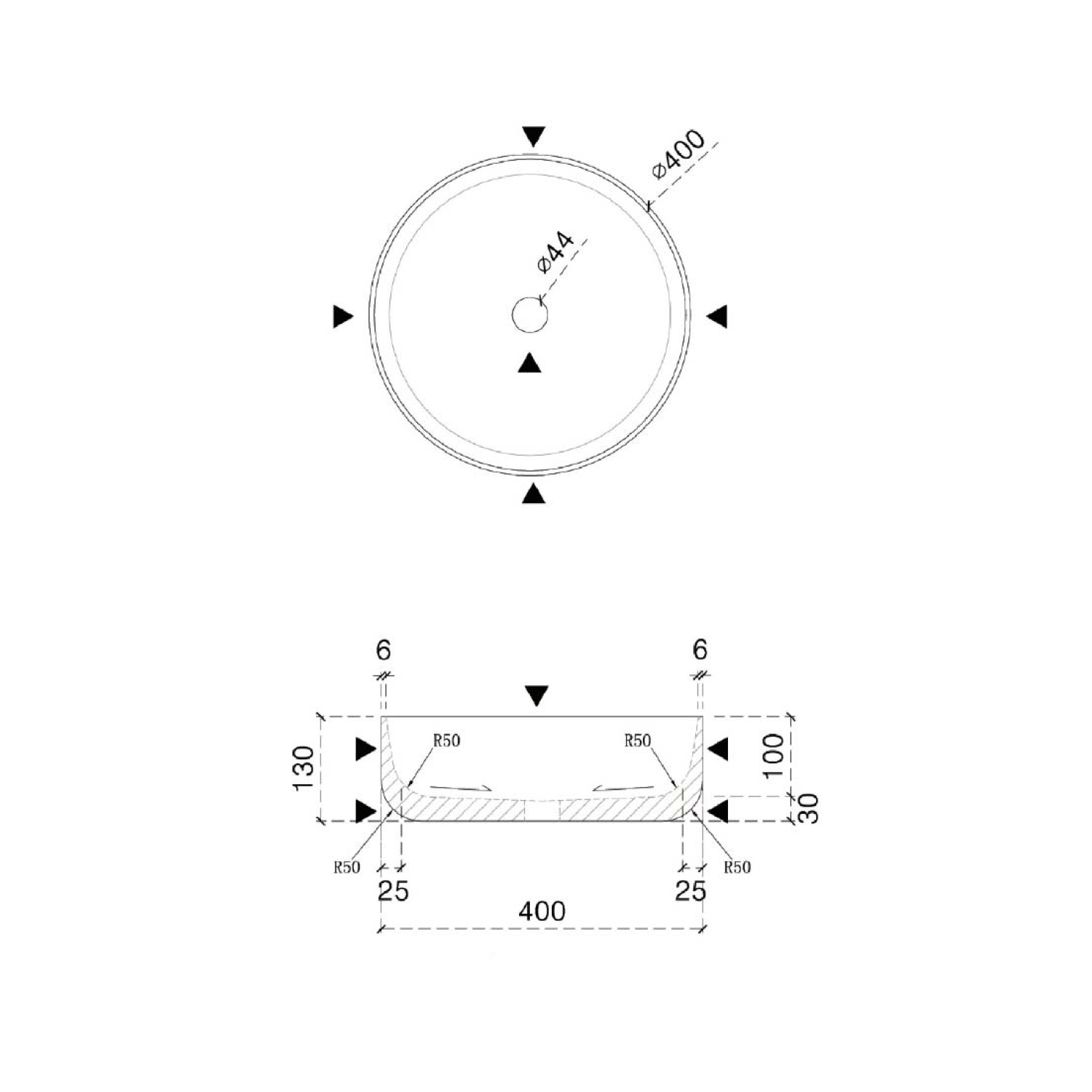 2401-01 BLOK kőmosdó, átm:40x12cm, csiszolt bézs, Travertin
