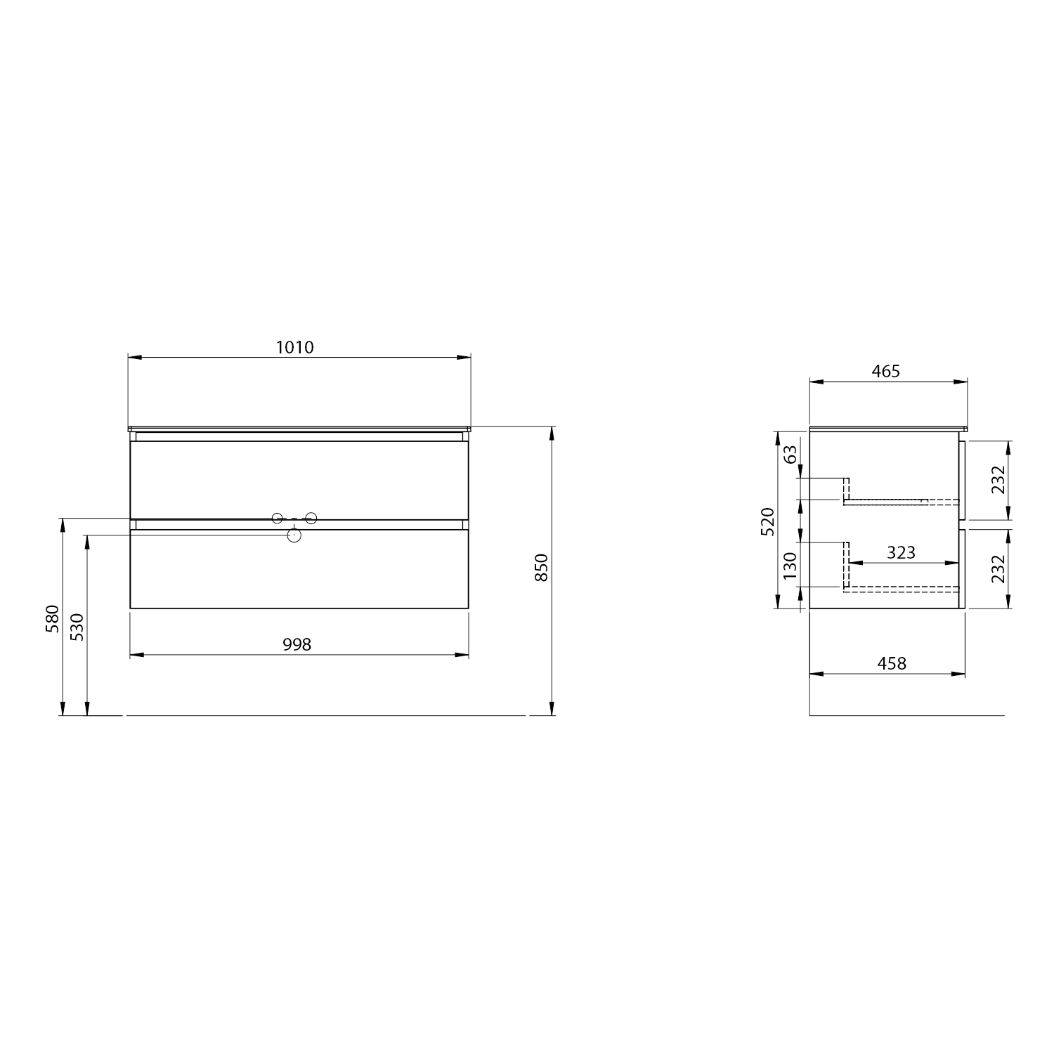 SD101-2 SIDRA öntöttmárvány mosdó, 2 csaplyukkal 101x46cm