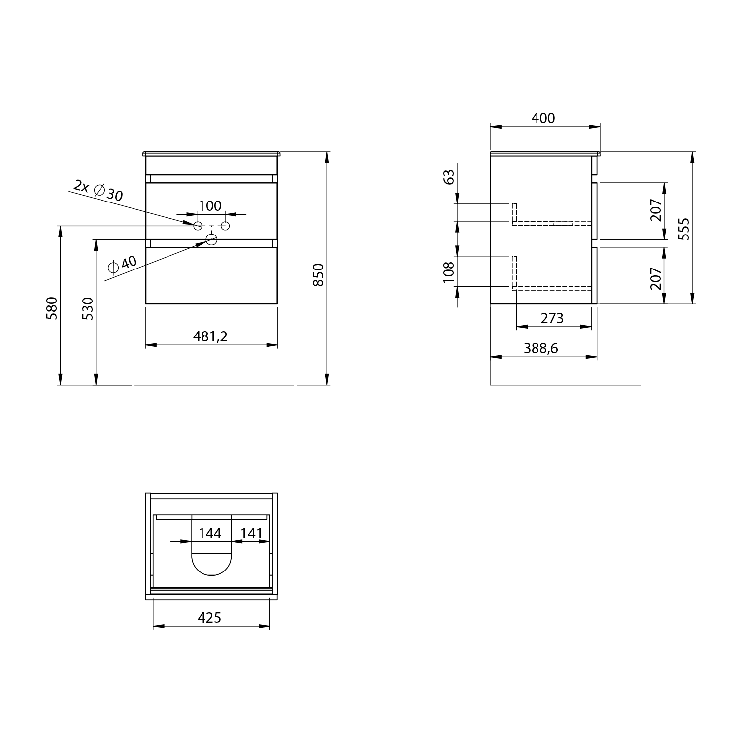 Furniture is equipped travels drawers with slow release and an automatic closing movement drawers. No more noisy closing.