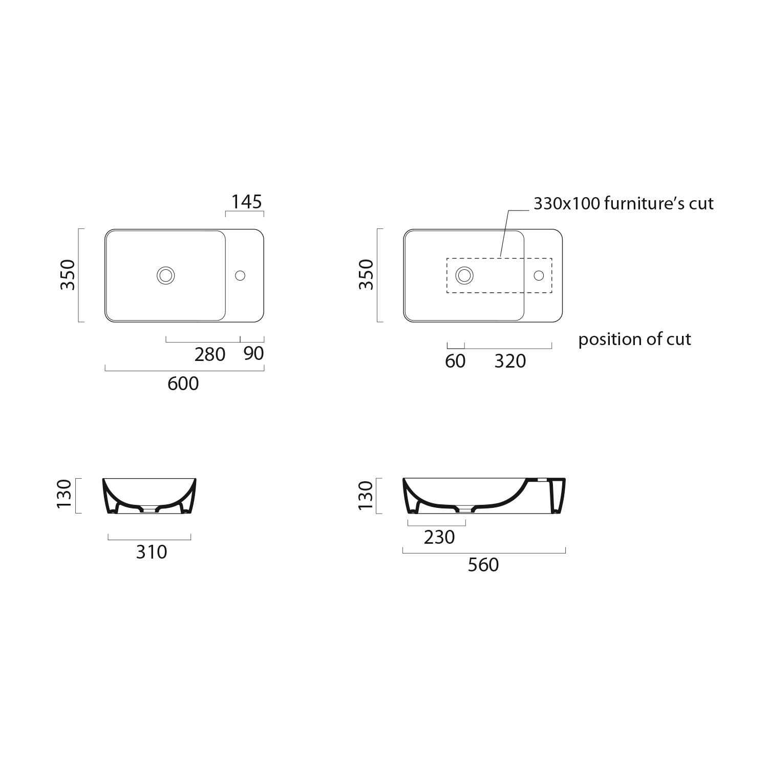 9883011 GSI MODO kerámiamosdó furat, nélkül, 60x35cm, ExtraGlaze
