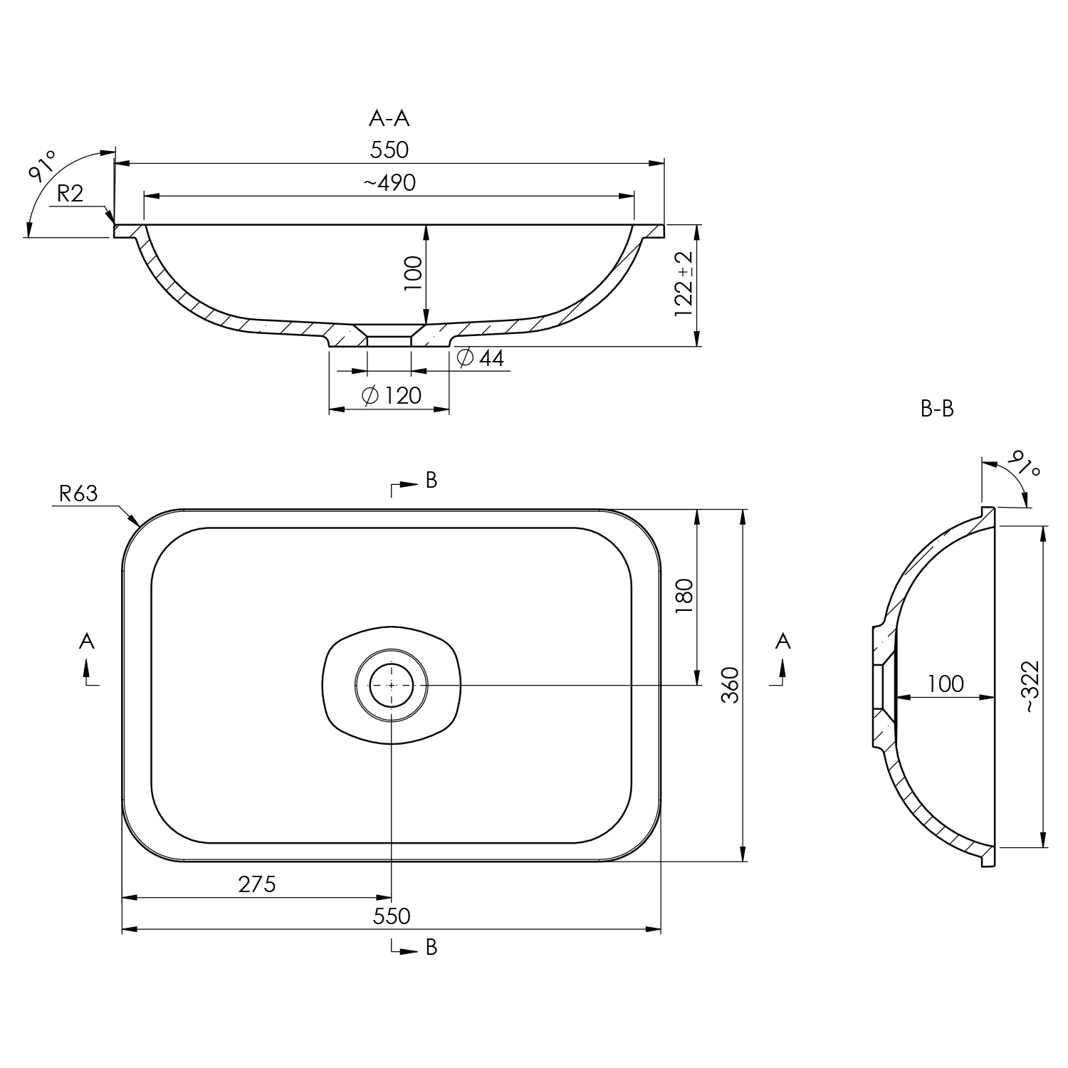 JAPURA öntöttmárvány mosdó, 55x36cm, matt fekete (50135B)