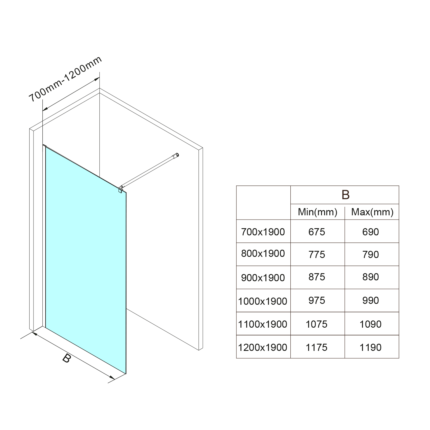 WI120 AQUALINE WALK IN Fix zuhanyfal, 1200x1900 mm, Brick üveg