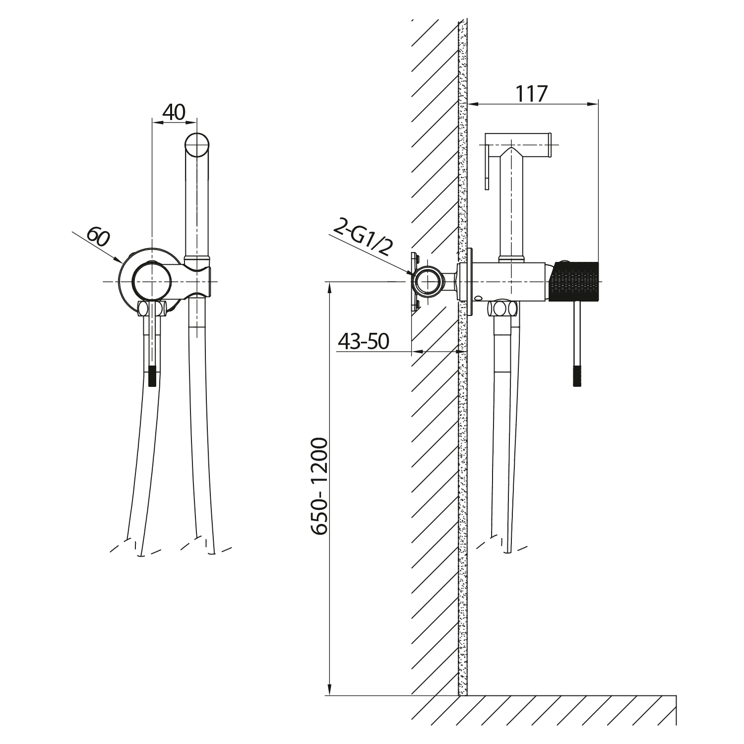 WD040B SOLARIS falbasüllyeszthető csaptelep bidézuhannyal, matt fekete